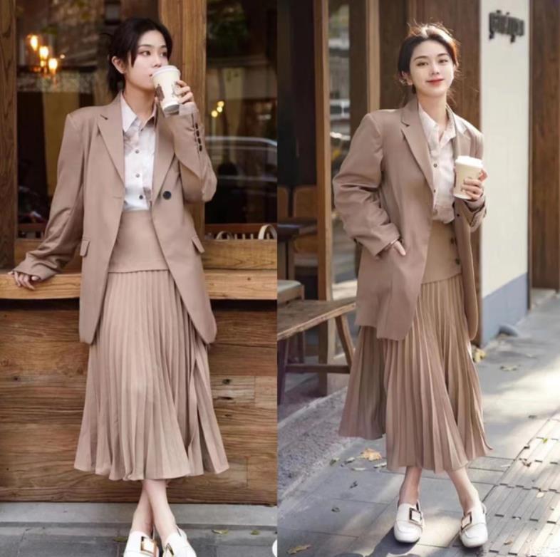 開春,怎麼穿纔好看呢?面對不穩定的天氣,早晚出門外套還是需要安排起來的,西裝外套+裙子,顯得高級又很有氣質。