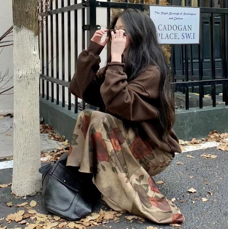 衛衣配碎花裙也太溫柔了,淺灰色的衛衣,很簡單百搭,也不挑人,黑色碎花裙穿起來少了些花哨,多了幾分高級感。
