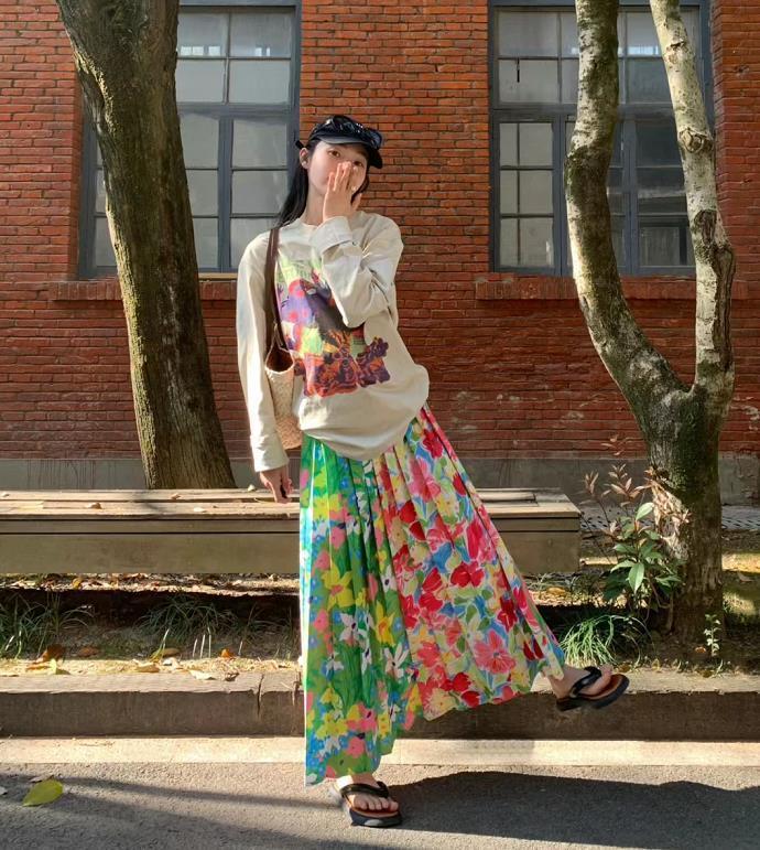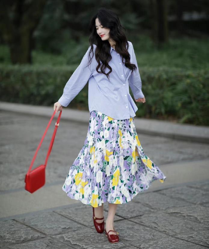 春天就是要花裏胡哨,第一眼看到這條百褶碎花裙,就被迷住了,裙子的垂墜感十足,版型有些偏a字形狀,藏肉更顯瘦。