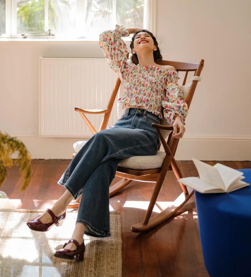 碎花雪紡上衣+牛仔褲,上繁下簡的組合,輕鬆打造出層次感,這可是萬年不變的定律,也不容易出錯。