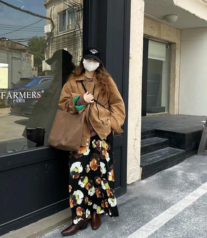 美拉德風滿滿的一套,淺咖色的外套,深棕色短靴,這些都是很適合在秋冬裏穿的單品,頗有氛圍感的。
