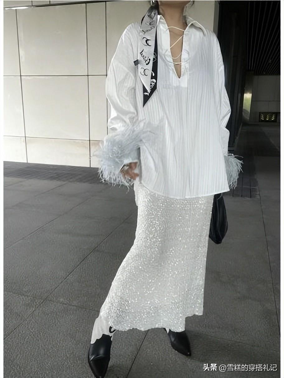 跟九分半裙僅僅十釐米的拖地長度,瞬間讓半裙看起來隆重了起來,但是跟大家想象中的拖沓不一樣,拖地長裙更強調風格上的慵懶。