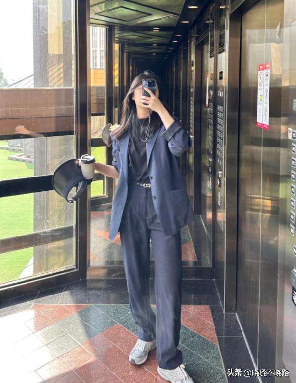 另一方面,九分長度的西裝褲則更顯利落,能恰到好處地露出腳踝,爲整體造型增添一絲輕盈感,這款褲子既保持了西裝的正式感,又不失日常的舒適與時尚。