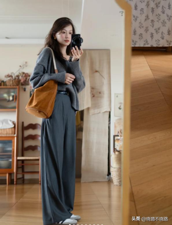 至於褲子的選擇,九分褲是秋冬季節展現露膚感的理想單品,這種褲子的長度恰到好處,能夠露出腳踝,對小個子的女生也十分友好。它不僅能讓你看起來顯瘦顯高,還能展現出利落高級的時尚感。