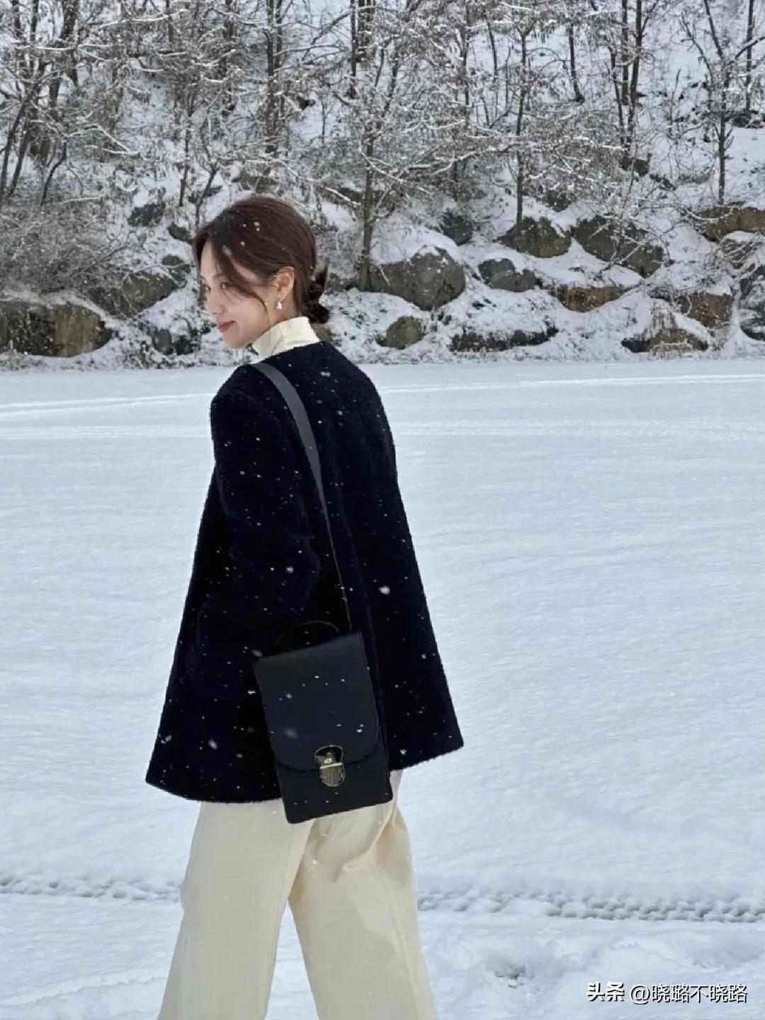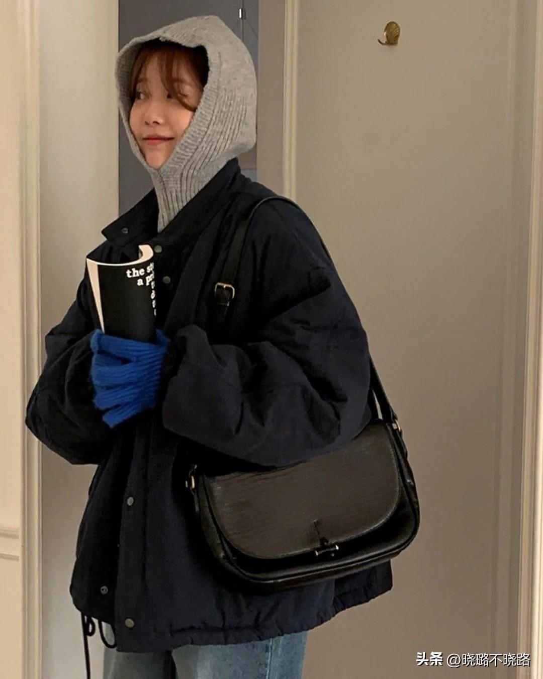 →配品提升:雖說韓式穿搭中服裝單品確實沒什麼彩色的元素,但一些氣質博主還是會利用彩色的配飾進行造型提亮。常見的就是亮色系的手套,包包,帽子,這些所佔面積很小,能集中體現穿搭的亮點。