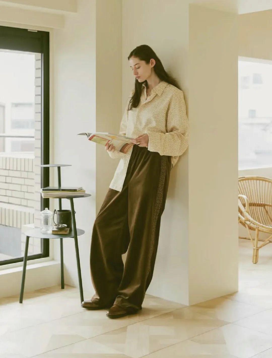 襯衫與闊腿褲的組合,不僅顯氣質優雅,還十分顯瘦,寬鬆的褲子版型,一點都不挑人,什麼身材都能駕馭。