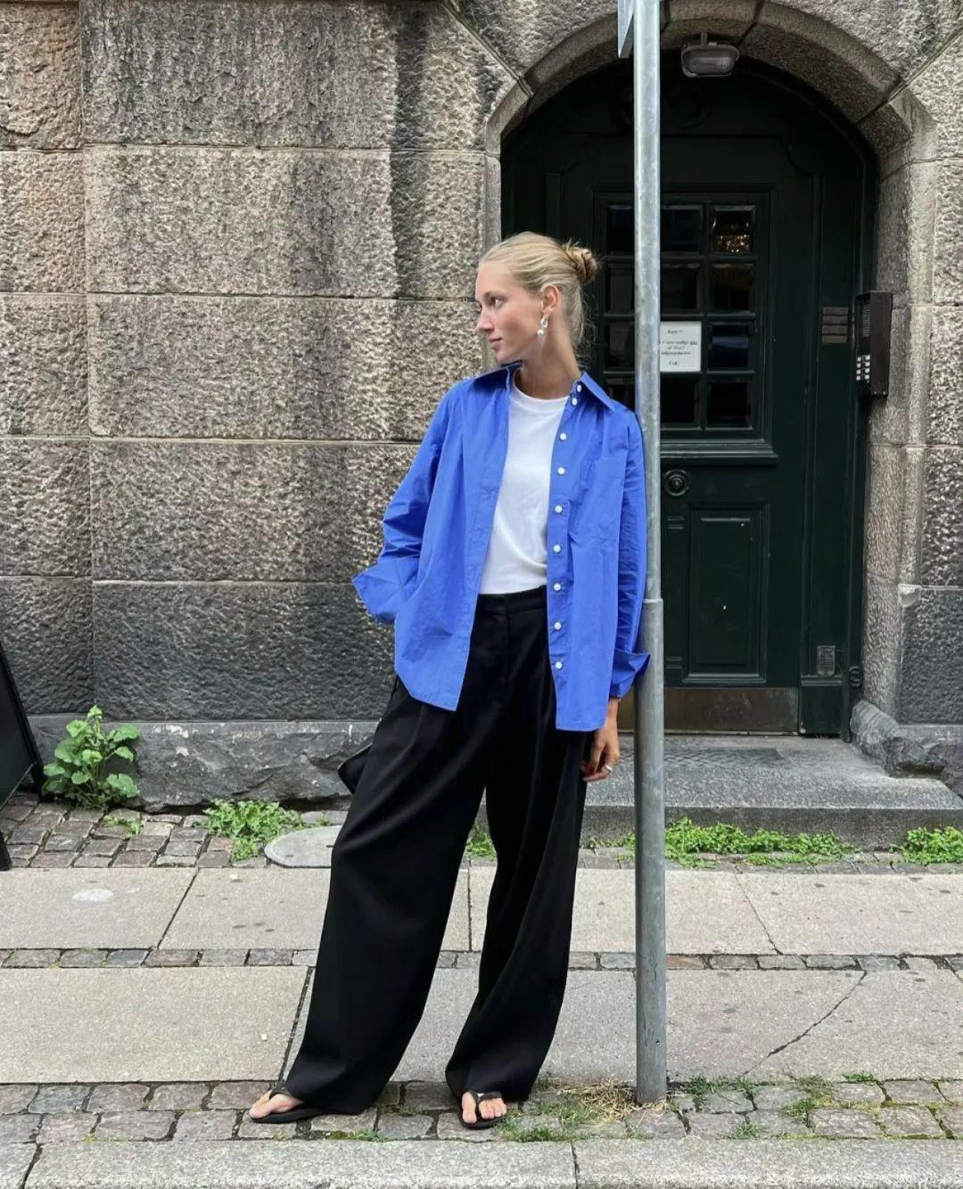 襯衫+闊腿褲,就是打造大女人風的關鍵穿搭,尤其是在外的時候,需要給予自己底氣時,一件基礎襯衫和瀟灑的闊腿褲搭配,就顯得乾淨利落,還不失氣場。