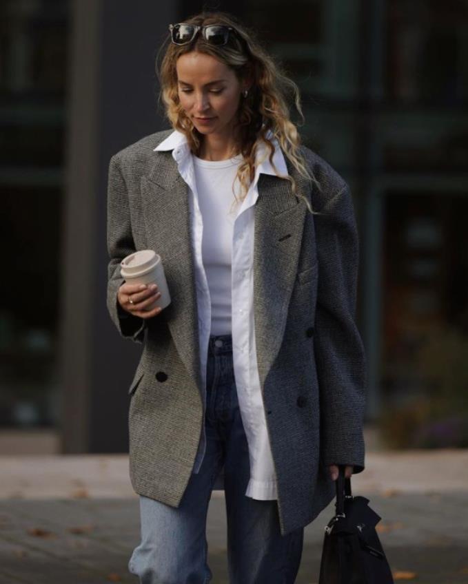 就算是寬鬆版型的襯衫,也可以搭配起各種外套,太過修身版型的襯衫反而不是很合適了。