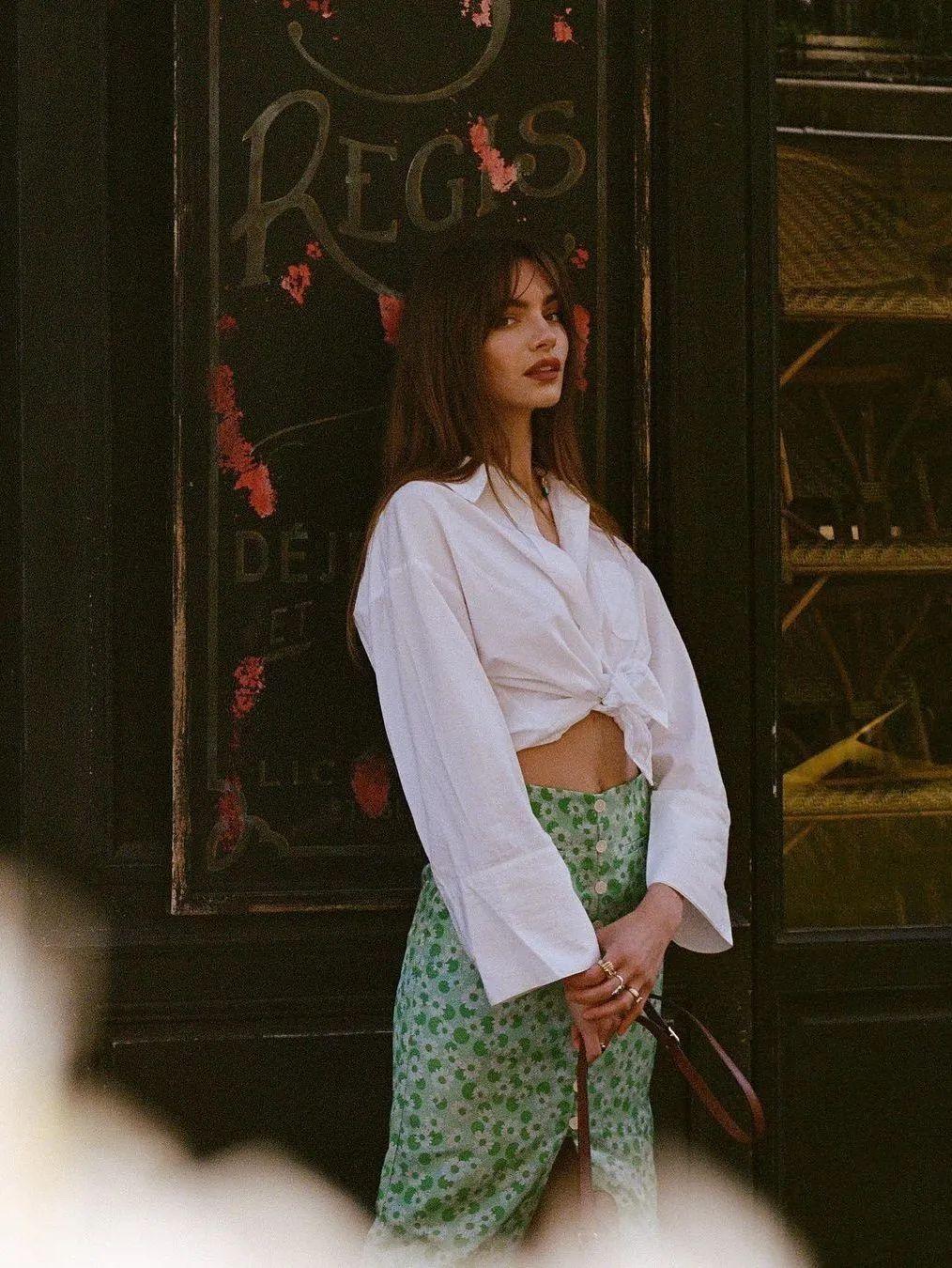 可別覺得襯衫這件上衣單品只能專屬於職場了,其實真沒有,它也可以屬於其他場合。當襯衫與裙子組合在一起時,就是那種無意間碰撞的浪漫,很好展現出精緻感。