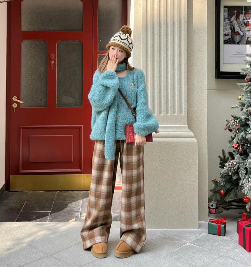 這個撞色好可愛啊,有種奶裏奶氣的慵懶感,寬鬆的毛衣和褲子,組合在一起後就形成一種鬆弛感,加上色彩的碰撞,這樣你的穿搭看起來就不會沉悶單調了。