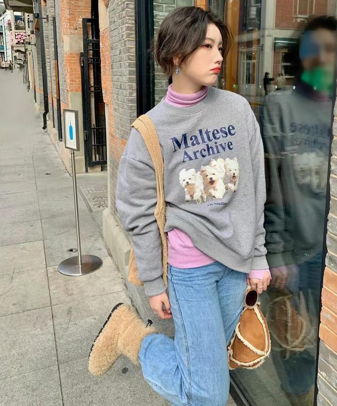 小個子女生快試試這種風格,隨意慵懶,一整個都是休閒又好看的,復古美式字母衛衣+牛仔半裙,這麼一套組合簡直絕配。