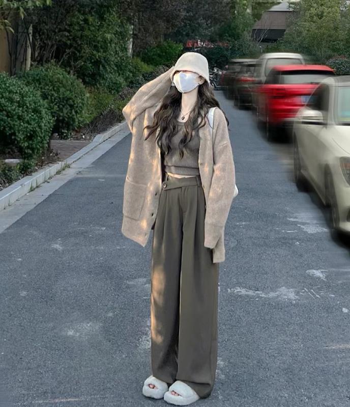 真的好喜歡這種慵懶感的穿搭,毛衣開衫,版型是寬鬆的,對身材一點違和感都沒有。結合起休閒西裝褲,更顯隨性自在,最重要的是顯瘦不挑人!