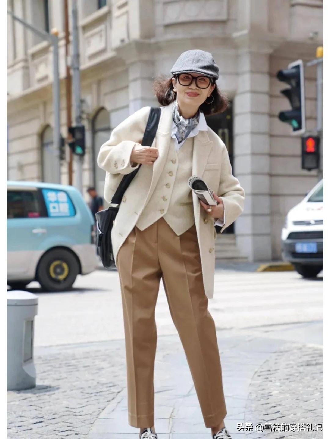 最重要的是,當上衣和下裝都採用了比較淺顯有襯膚的配色,整體就能處在一個減齡輕便的氛圍感裏,以此來弱化咱們的年齡感,幫助釋放更青春有朝氣的感覺。