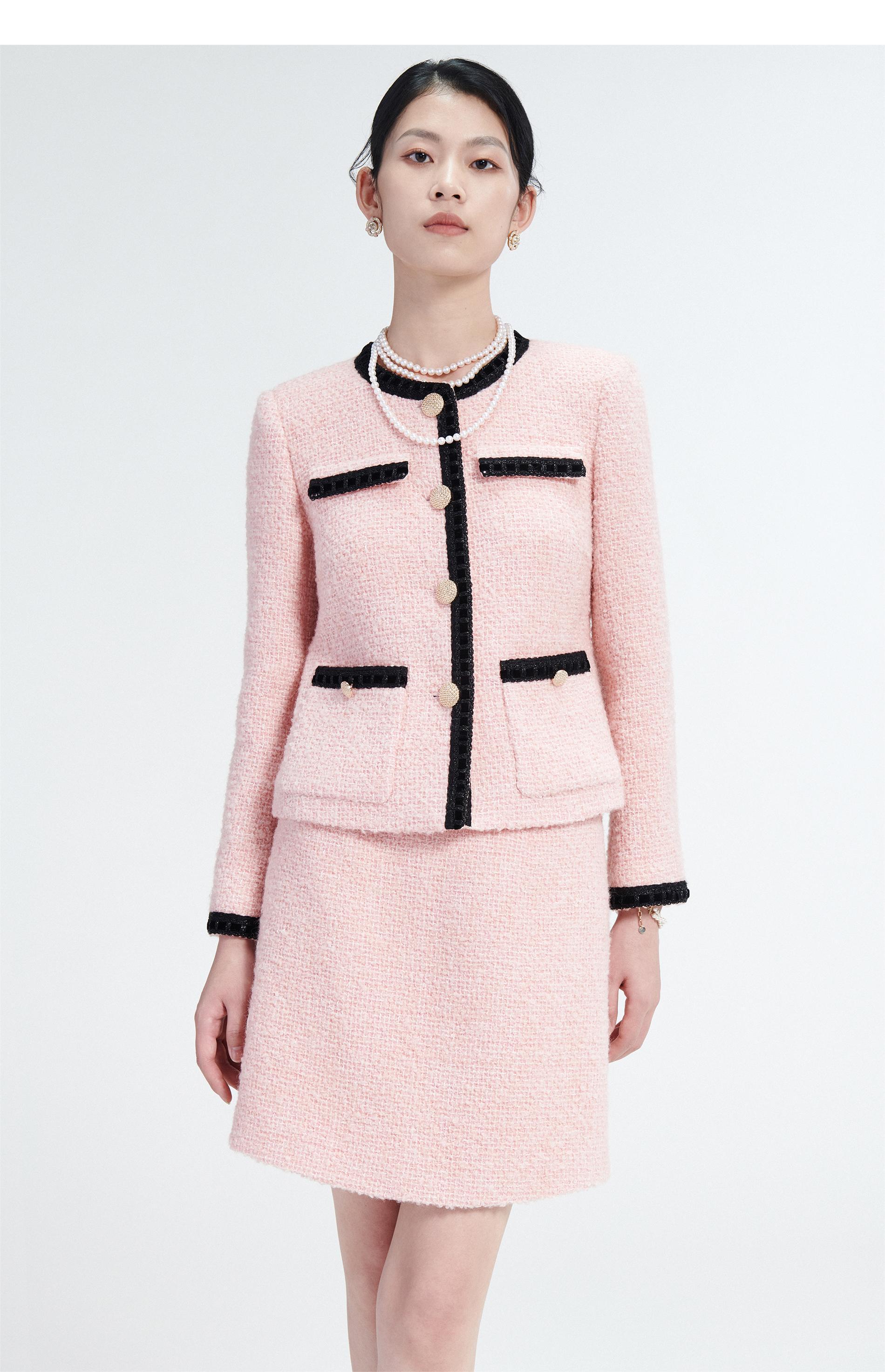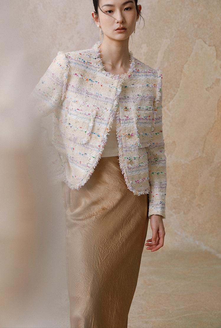小香風外套通常比較精緻和優雅,適合那些需要在職場中穿着得體的女性穿着。有圓領和方領的款式,現在流行的新中式的小香風也非常值得入手。