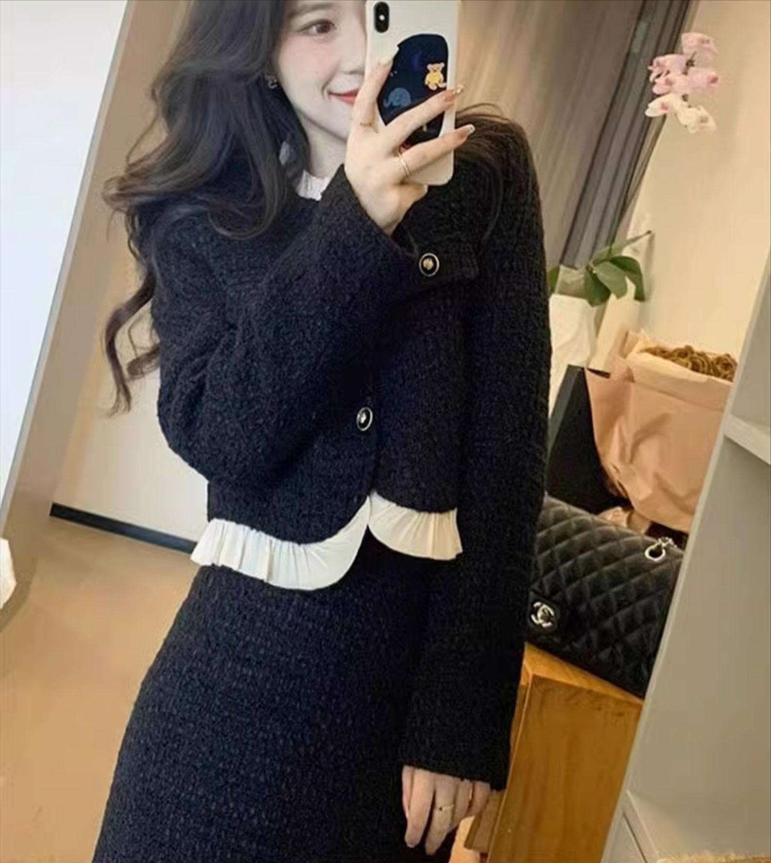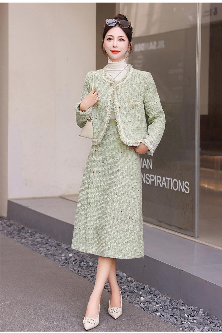 小香風外套和裙子的搭配可以展現出女性的優雅和溫柔,鞋子選擇小貓跟或者中跟鞋,非常有“香奶奶”氣質。