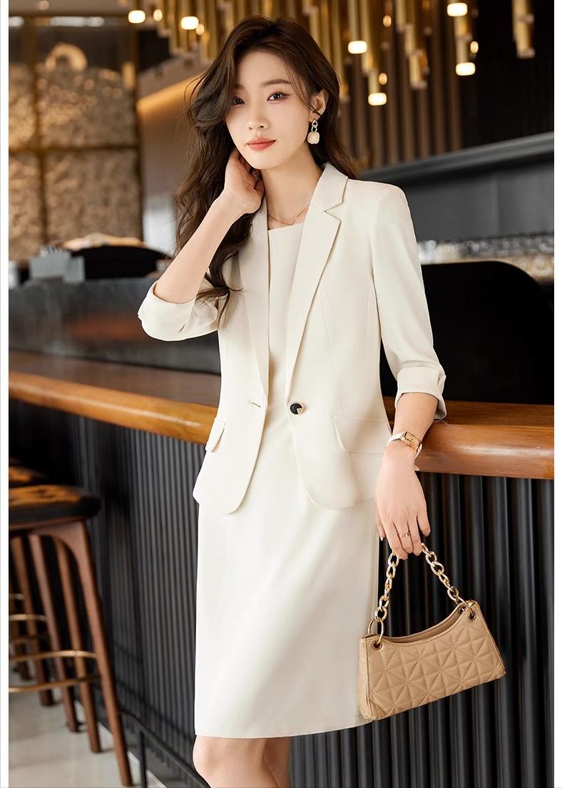 襯衫+半身裙+西裝外套:西裝的硬朗與優雅半身裙結合,很顯氣質,柔和感與帥氣感缺一不可。
