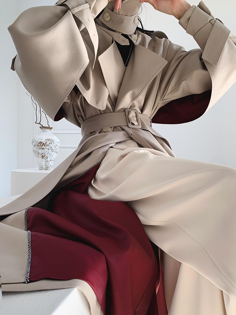 風衣與連衣裙是絕配。如果風衣是長款的,可以選擇長款或中長款的連衣裙,營造出流暢的線條感。