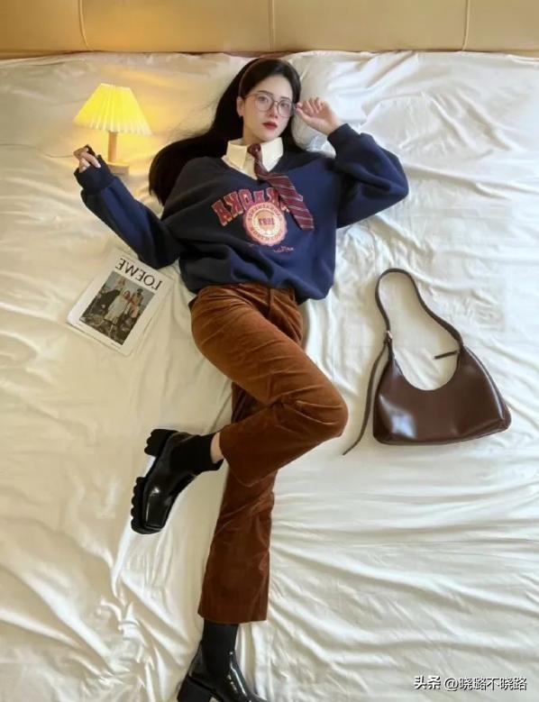 棕色與藏藍色的搭配,盡顯經典復古的時尚氣息,將摩登與懷舊完美融合,打造出別具一格的時尚造型。這套牛仔套裝與棕色外套的獨特組合,充分展現了穿着者的個性魅力,流露出自信和創意。燈芯絨褲子與牛仔外套的復古韻味相得益彰,適合那些追求個性表達的時尚達人。