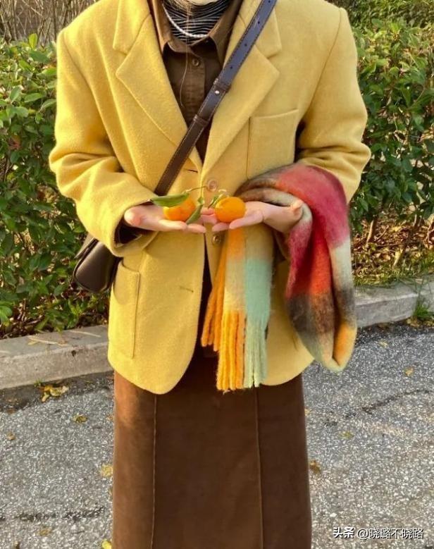 在秋冬季節,一件溫暖的黃色針織衫是必不可少的,爲了讓整體造型更加豐富,內搭一件條紋襯衫打造甜美的學院風。燈芯絨與針織的結合,燈芯絨的柔軟和針織的細膩,共同演繹出一種既經典又現代的風格。