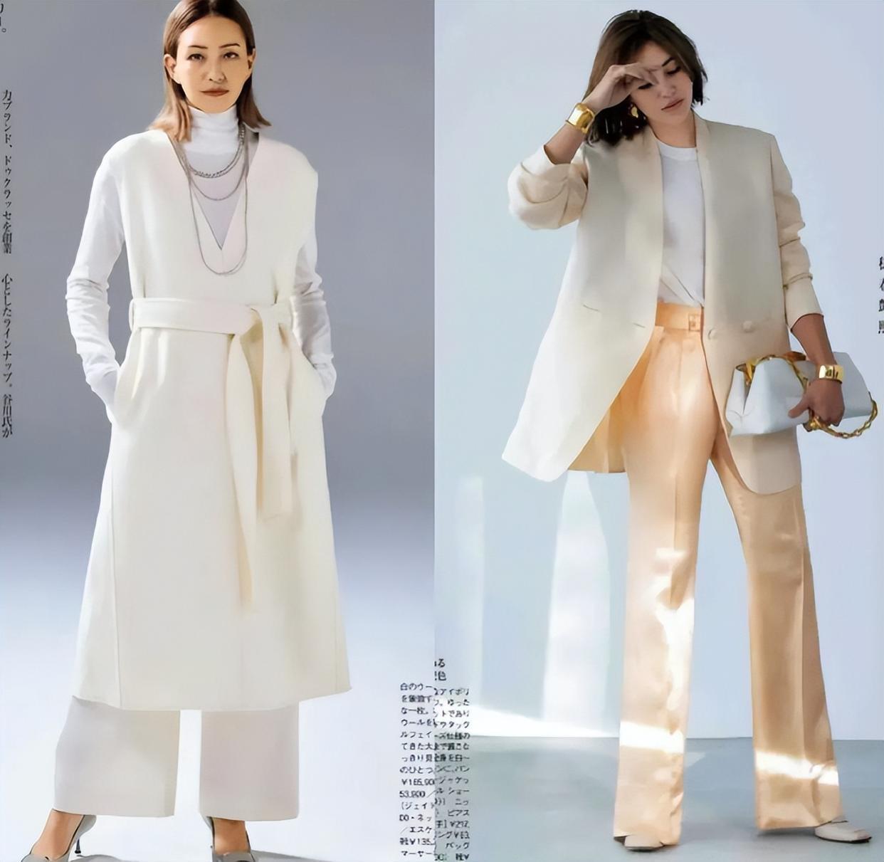 比如稍微寬鬆的西服套裝,我們可以搭配更加挺闊的面料、溫柔且耐看。西服套裝不必搭配太修身的款式,具備一定的寬鬆度,更展現出鬆弛大方的美。
