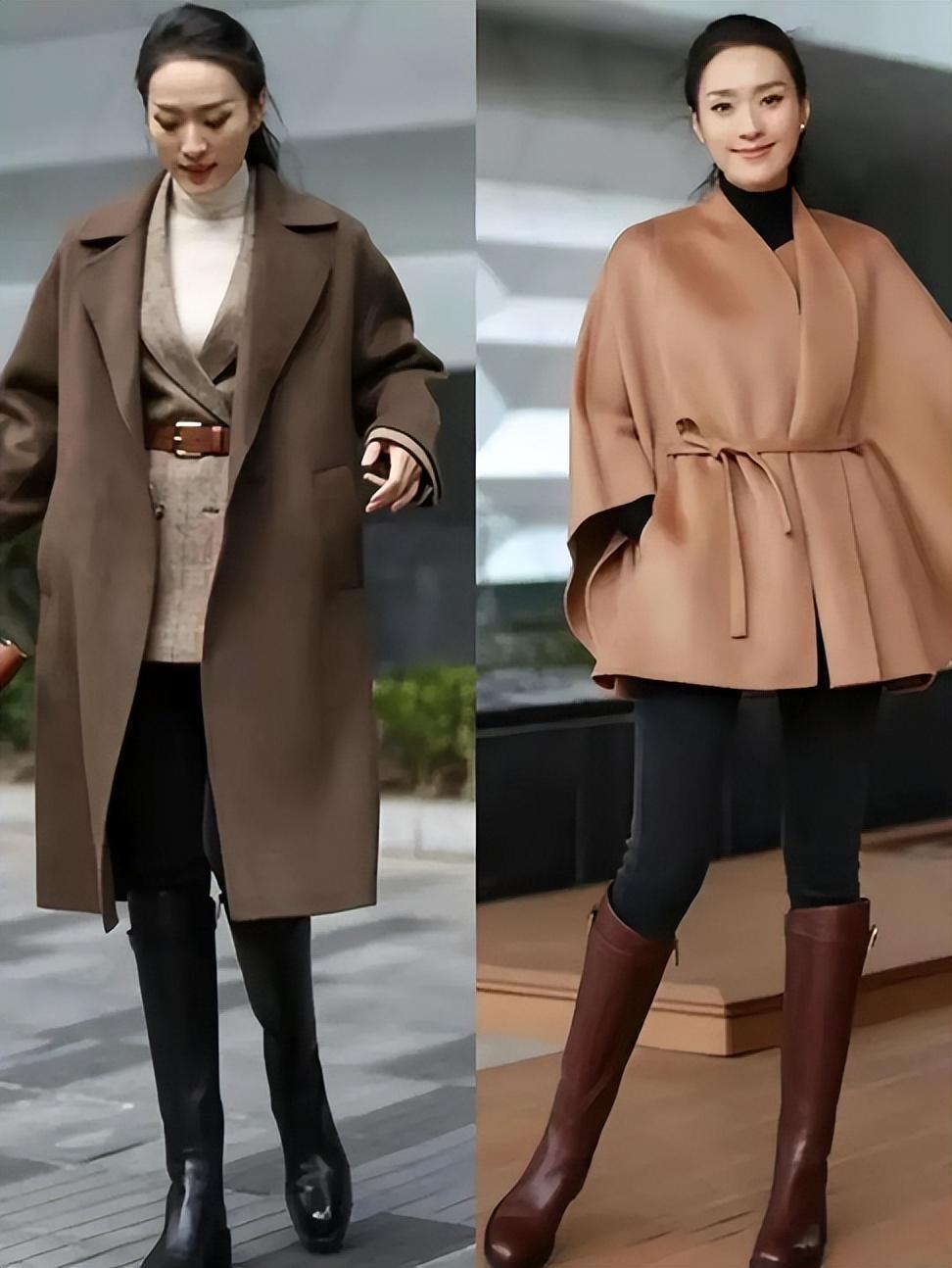 尤其是雙腿比較粗壯,想要修飾身形的人羣,都可以用毛呢大衣來搭配修身的小黑褲。修身小黑褲顯瘦又高級,表現出雙腿的輕盈感,配厚底騎士靴也很大方高級。
