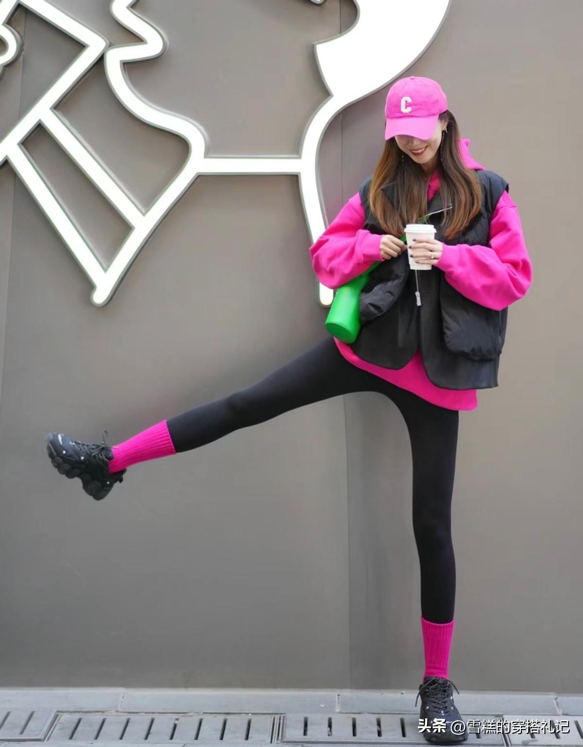 棉服和瑜伽褲想要穿的更加具有時髦個性感的話,那麼在這個時候就推薦大家可以從色系的搭配當中進行入手突破啦。所選擇的內搭又或者是一些配飾完全可以將亮色以及彩色調多多的進行運用,視覺上的層次感真的非常具有優勢。