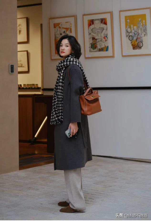 雖然在穿基礎款大衣的時候也需要一些簡約圖案的點綴,但建議大家選擇格紋波點等簡約的圖案,避免整體花哨廉價,而且大家也要不斷的壓縮圖案款式單品的面積,這樣才能夠避免臃腫肥胖,像這組穿搭純色系大衣配精緻,格紋圍巾上繁下簡的配合下顯得格外的優雅有氣質。