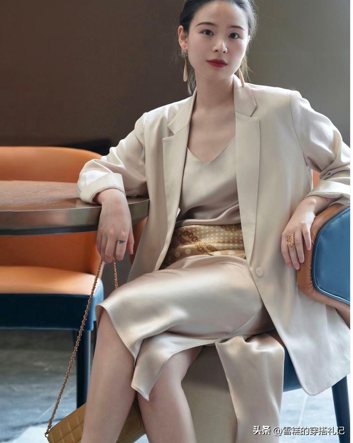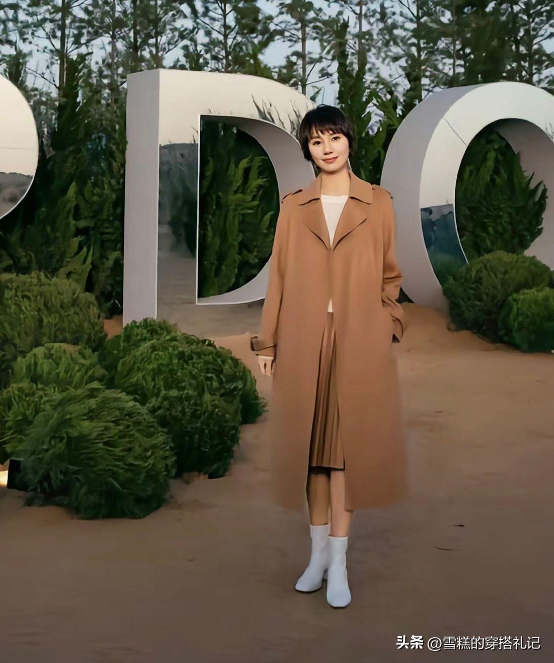 並且在這樣的組合搭配當中也是很推薦各位可以像女藝人袁泉一樣,儘量是能夠選擇單品單色穿搭的呈現效果,從視覺上而言的話利落感以及和諧感還是比較明顯的,在職場當中又或者是日常約會以及出行的時候再選擇這樣的搭配很適宜呢。