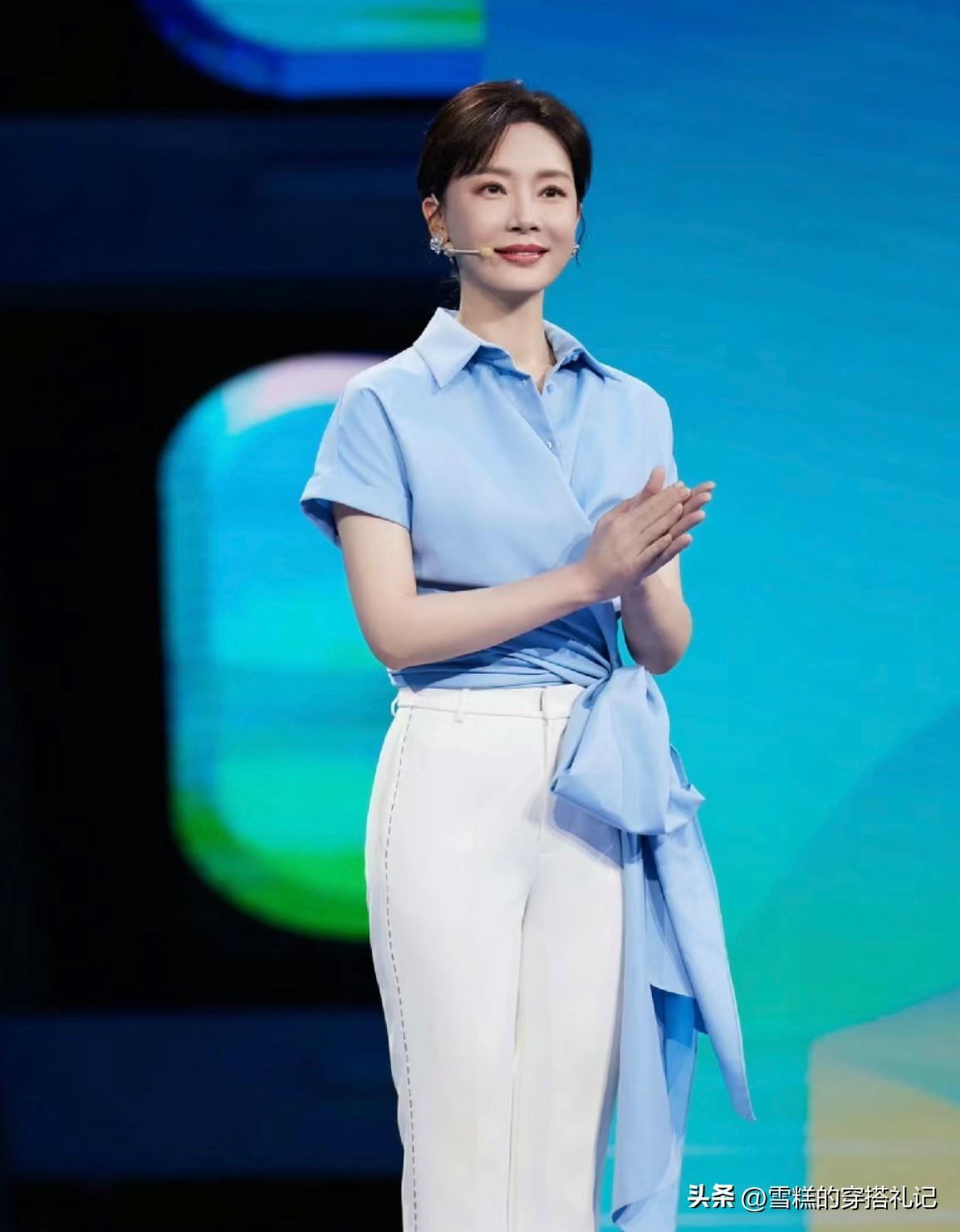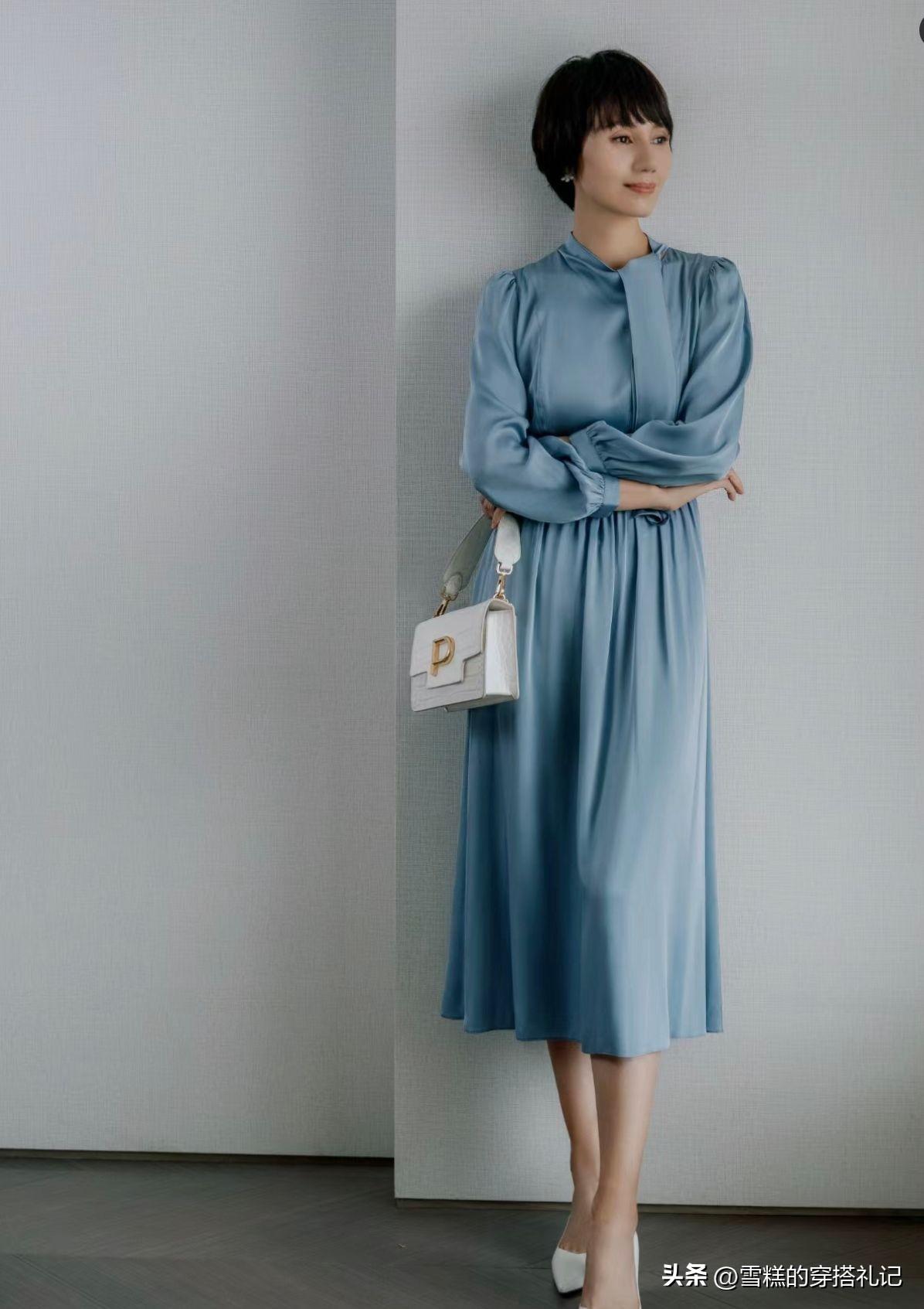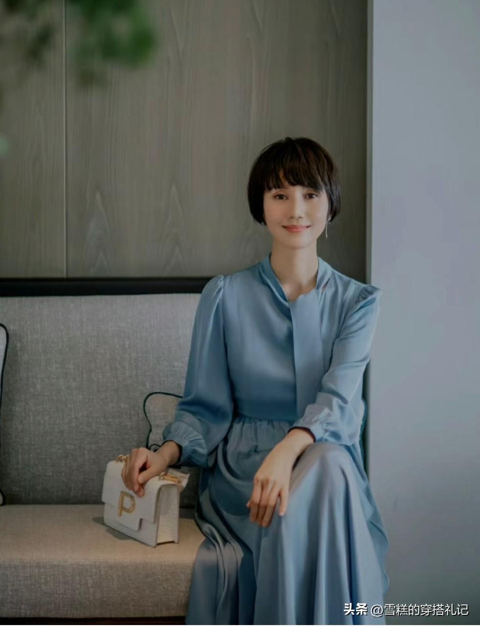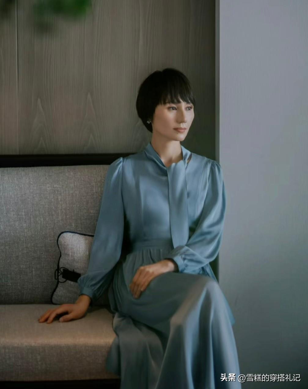 第1種高級的色調就推薦大家可以像袁泉一樣多多的搭配一些霧霾藍這一款顏色,它是屬於冷色調當中最有質感的一款顏色了,而且對於中年階段的女性來說,所襯托出來的質感會偏向於高級又優雅集於一身的視覺效果。