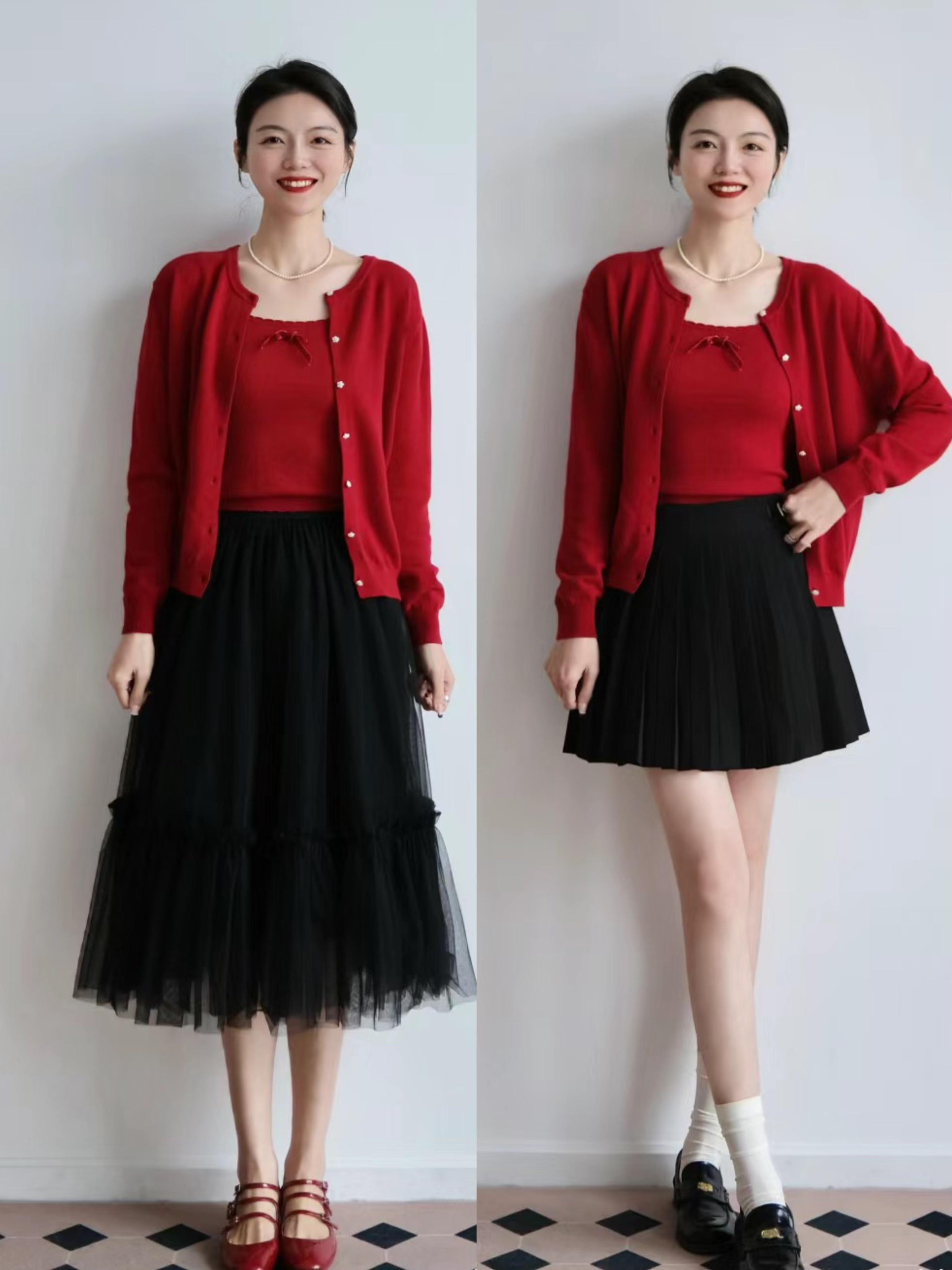 尤其是在春節過後,我們可以繼續穿熱辣明亮的紅色針織衫,配經典耐看的黑色半身裙。紅黑色的搭配、也是非常奇妙的組合。高級、醒目、大氣又顯貴。