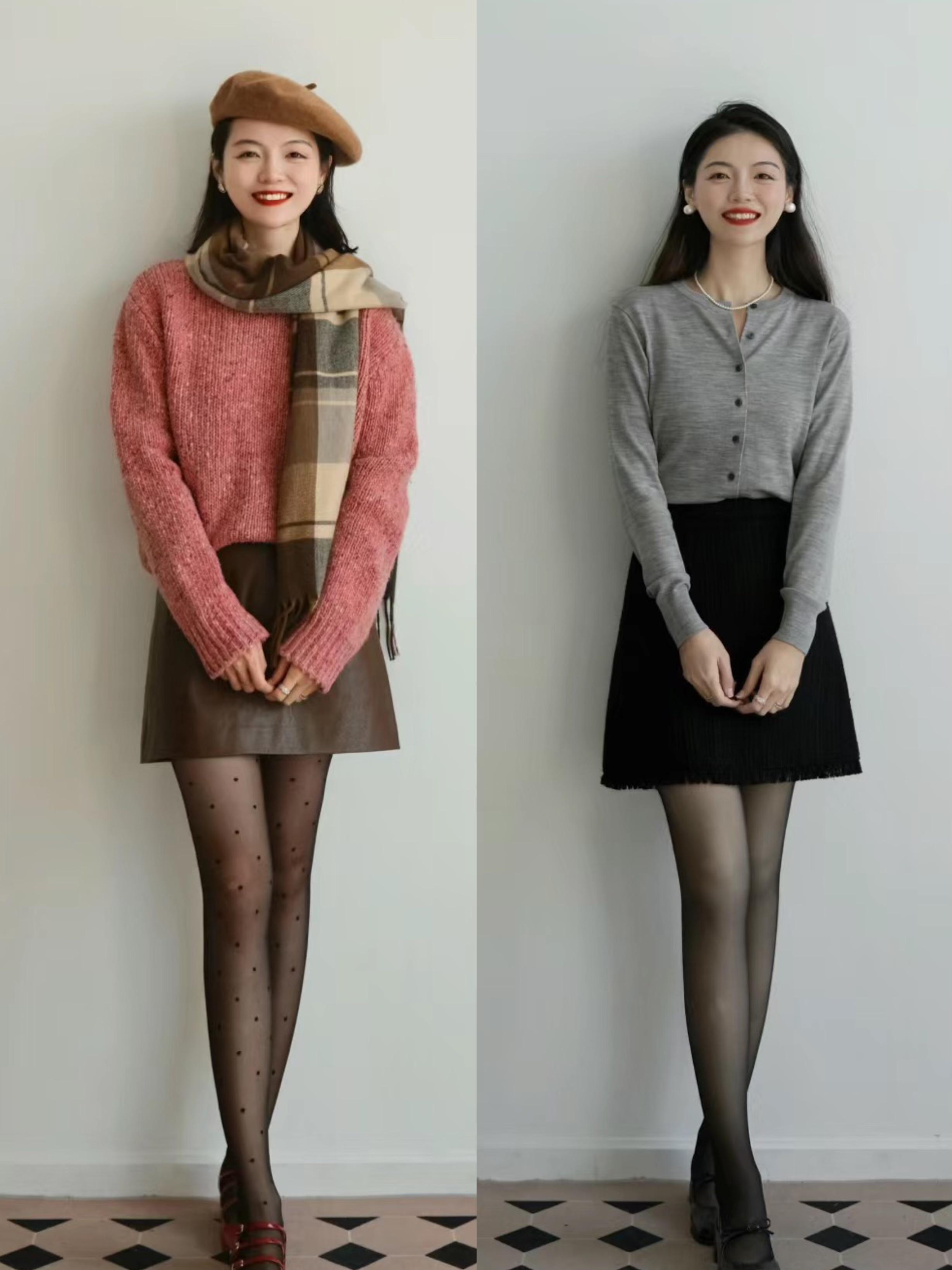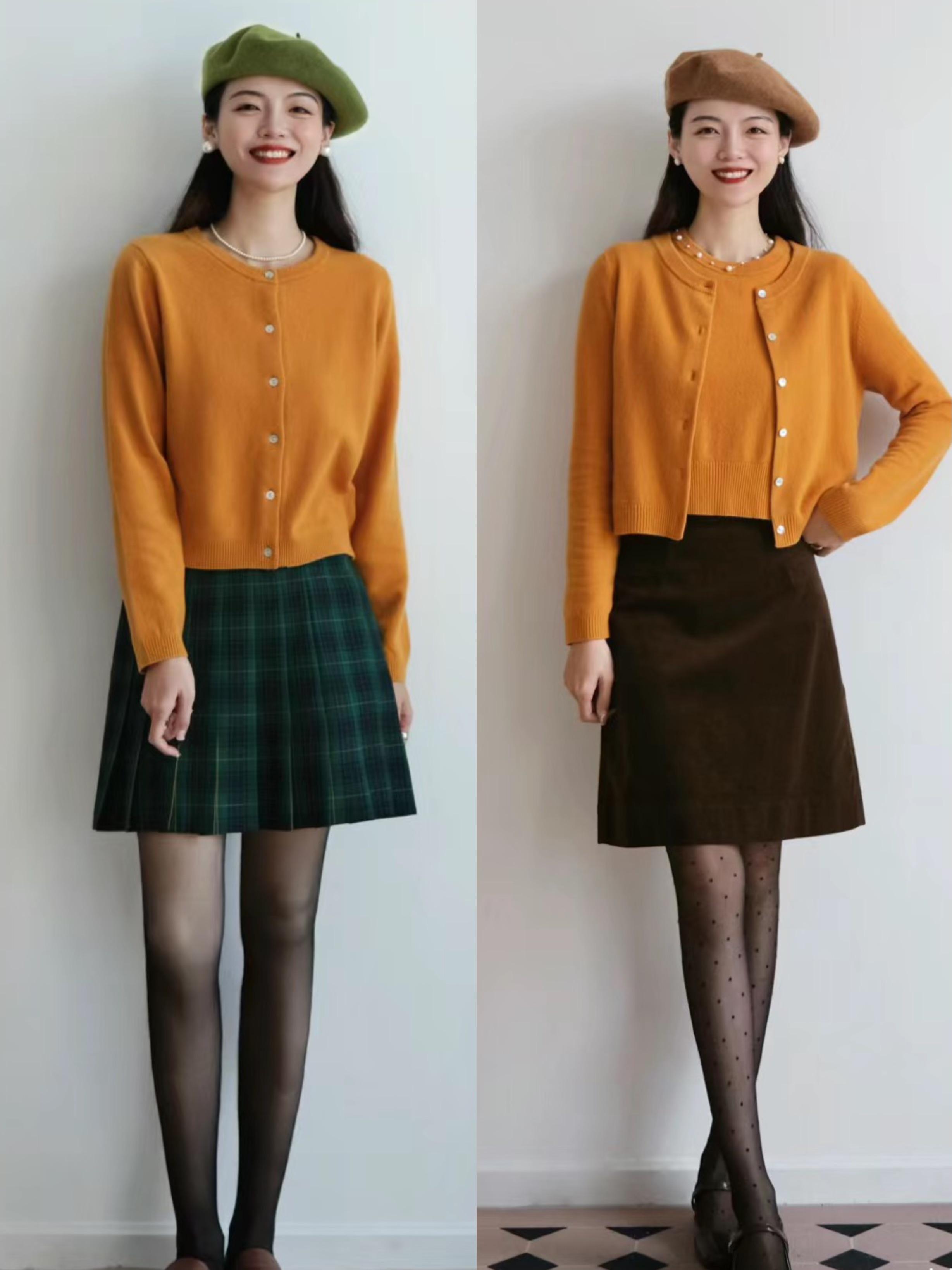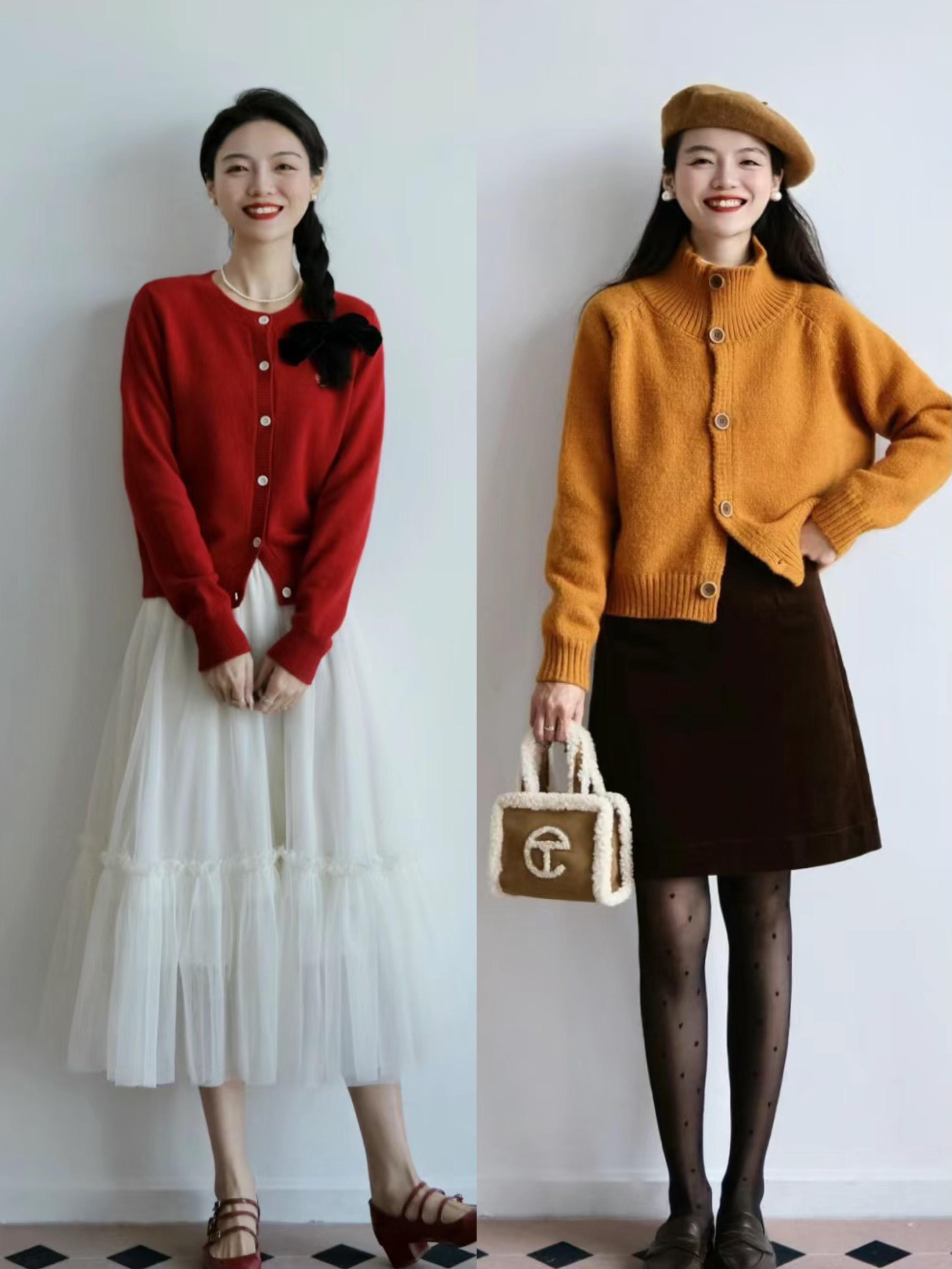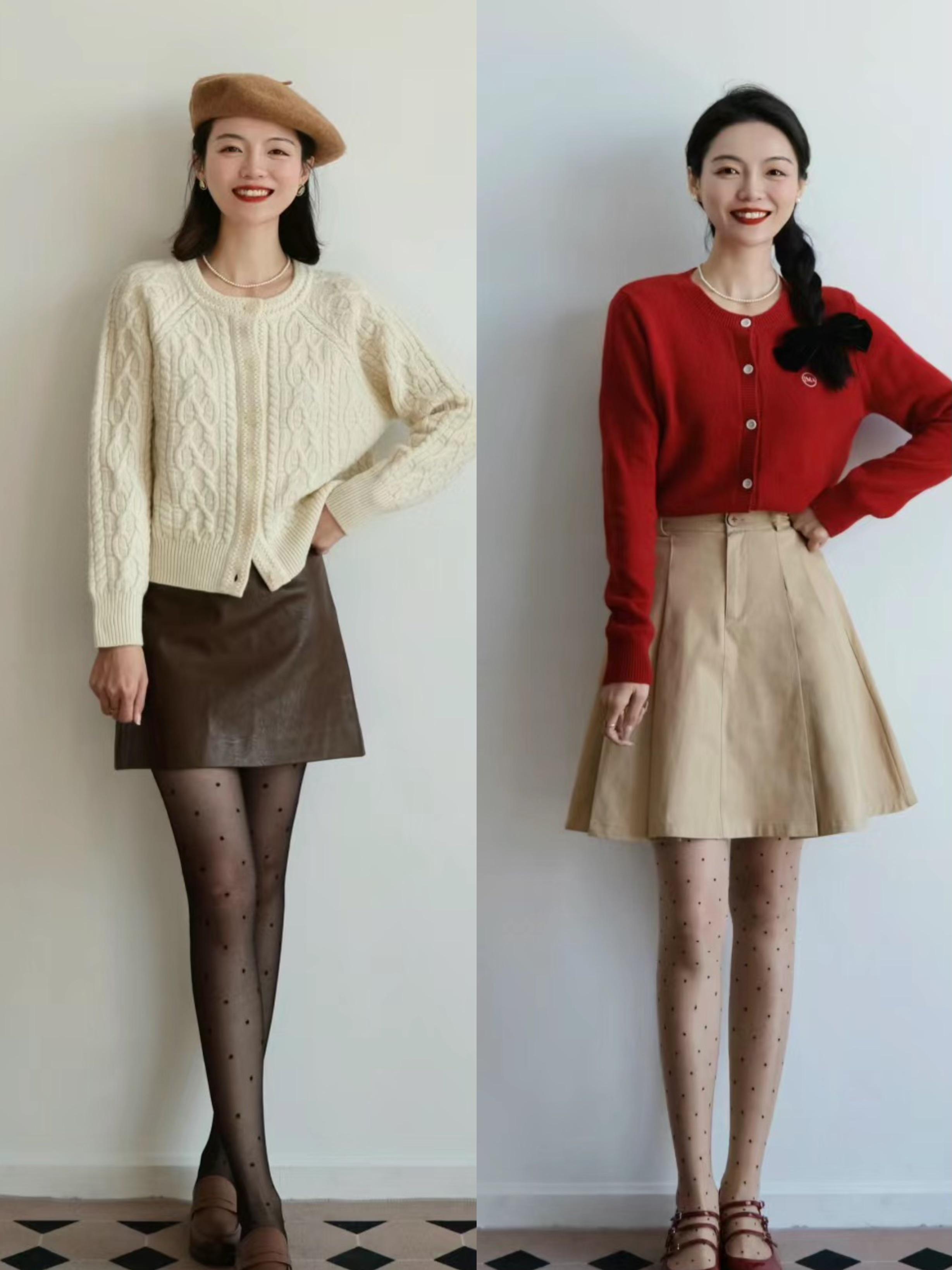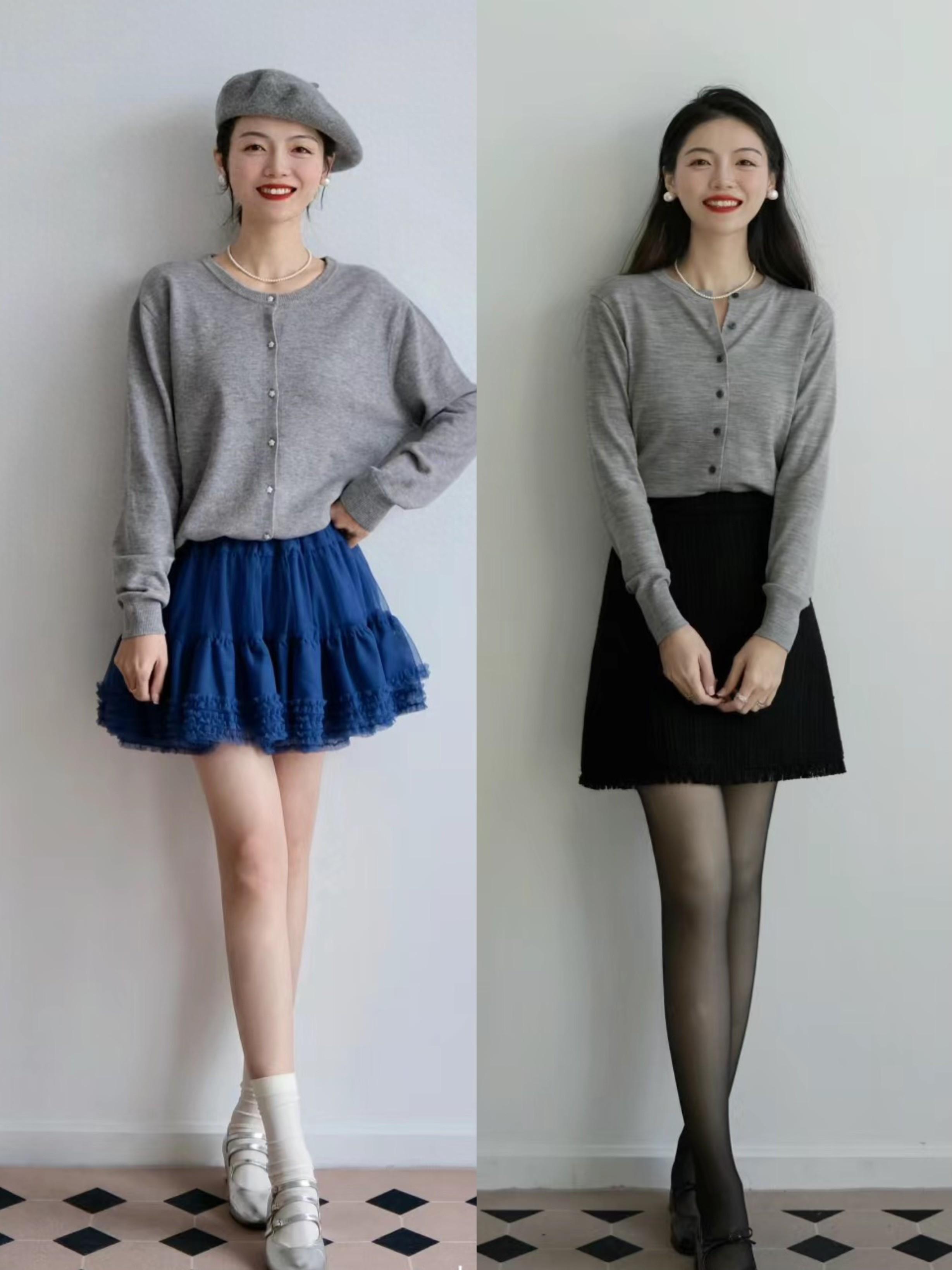 同樣是針織衫+小裙子的組合,只需要搭配一定的小技巧,就可以表現出更時髦洋氣的美。當我們穿針織開衫的時候,紐扣也沒有必要完全繫上。