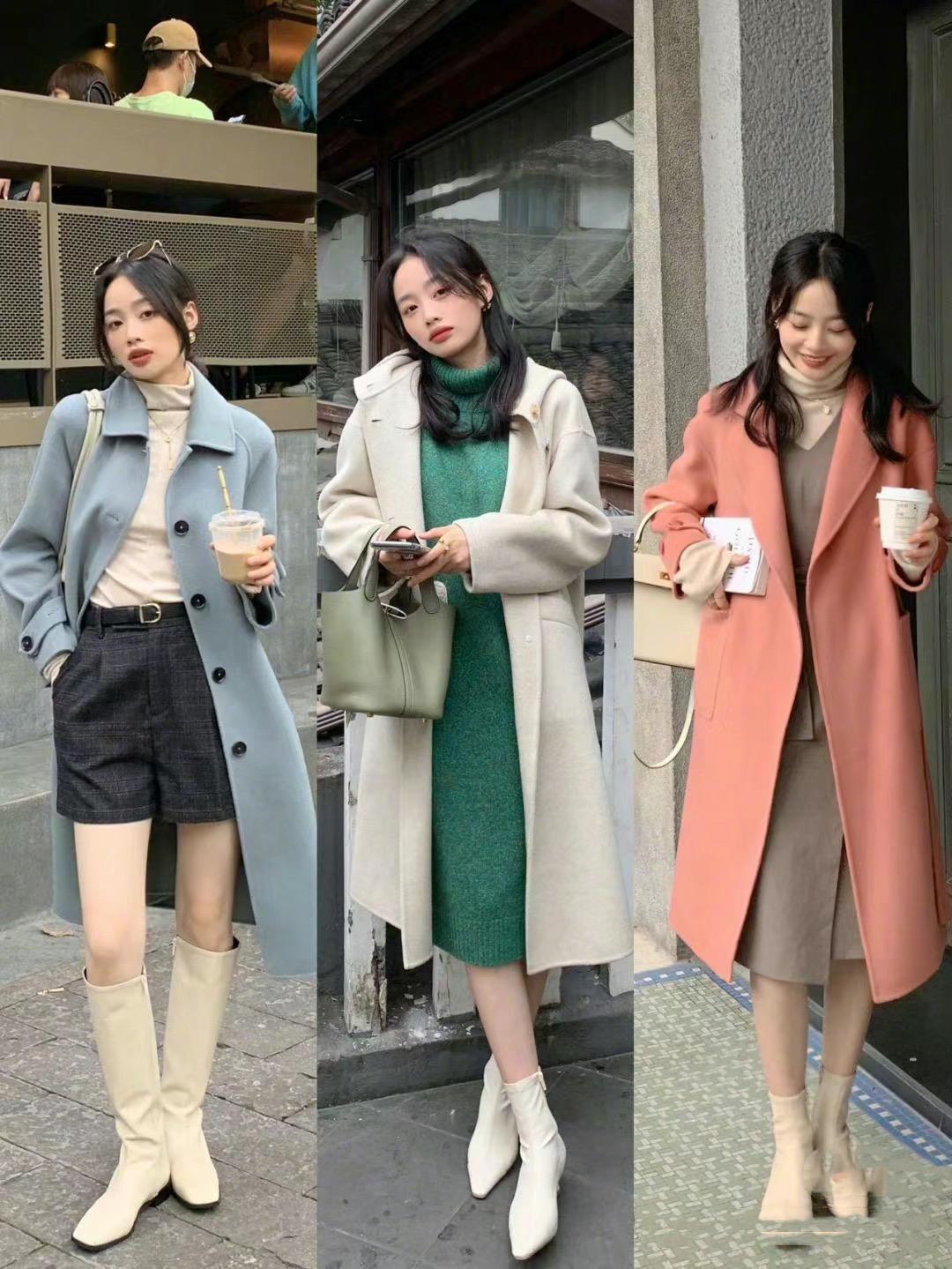 用溫柔的毛呢外套,配利落的高腰半身裙,隨意地搭配一雙及踝的白色短靴、或者及膝的淺色系長靴,都可以表現出女性的溫柔知性,尤其是白色短靴、彰顯大氣之美。