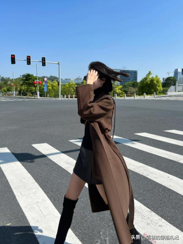 縮短大衣的長度選擇一款及臀的中長款外套與光腿神器搭配,將更符合下衣失蹤的潮流穿法,這種搭配不僅優化了腿部線條的比例,使腿部在視覺上顯得更加修長,更是許多女性追求的顯高顯瘦的穿搭方式。