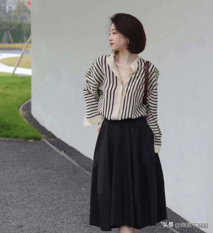 儘管當下的博主們強調不要穿老氣的衣服,但對於正處於事業上升期的40歲女性來說,着裝還是需要注重得體、穩重和大方。不露膝的裙子既能展示女性的優雅,並且對腿部進行修飾作用,打造的風格也變化得更多。