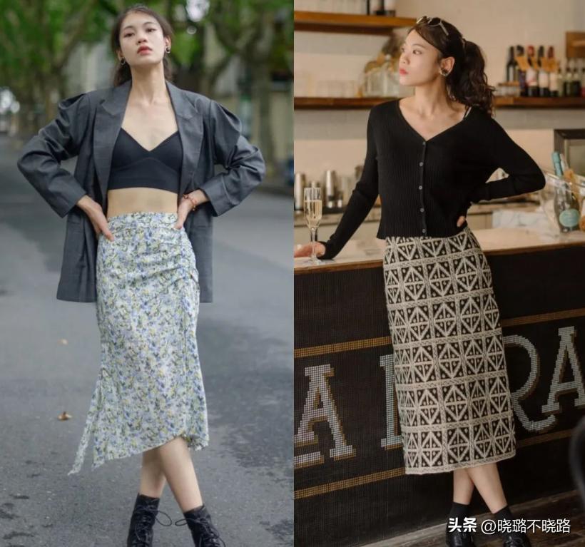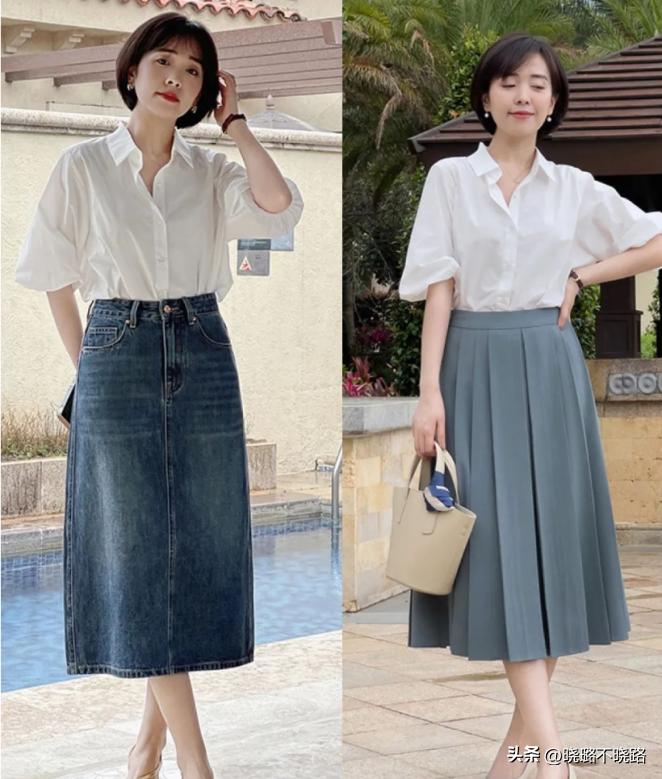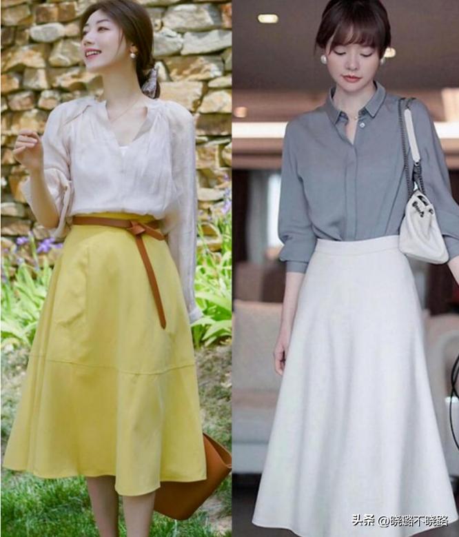 中年女性裙子的優勢比褲裝要強,過膝裙是一種能夠輕鬆掩蓋粗腿或彎曲腿型的選擇,需要注意的是,不能僅爲了遮擋腿型而選擇長到腳踝的裙子,因爲這樣反而會顯得腿短。相反選擇露出小腿最細的一截的裙子,可以最大程度地顯瘦和顯高。