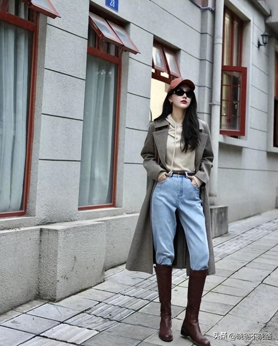 可以選擇稍微寬鬆的直筒版型牛仔褲來搭配長靴做塞褲管的穿搭,這種穿法更加中性,也更法式帥氣一點,適合更追求中性感穿搭的朋友。