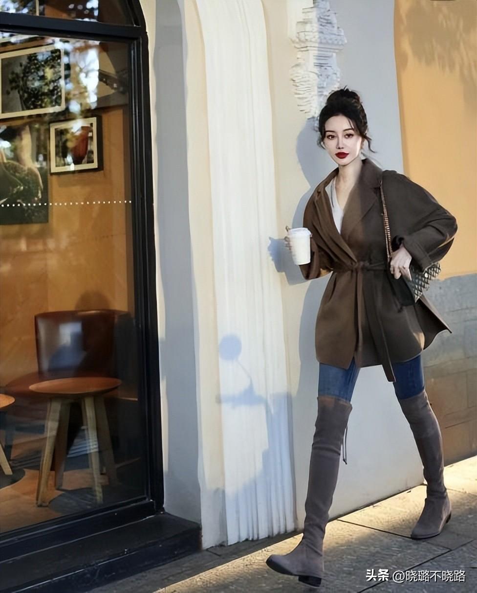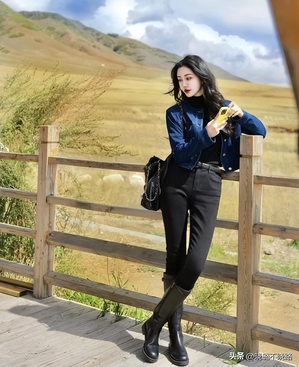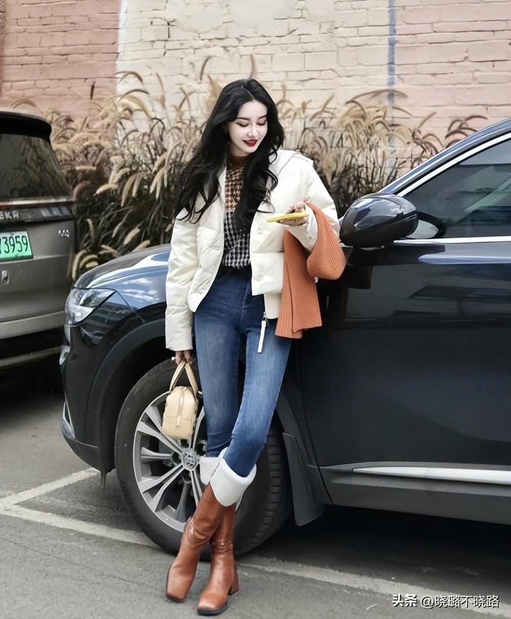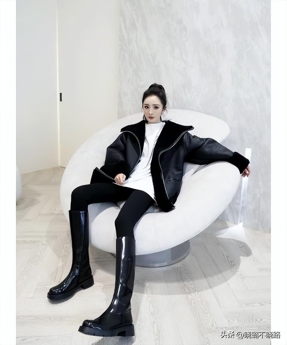 但如果說道時尚度來說的話,我會更加建議大家選擇修身長褲搭配長靴,畢竟時尚女王楊冪都對修身牛仔褲+長靴的穿搭愛不釋手。