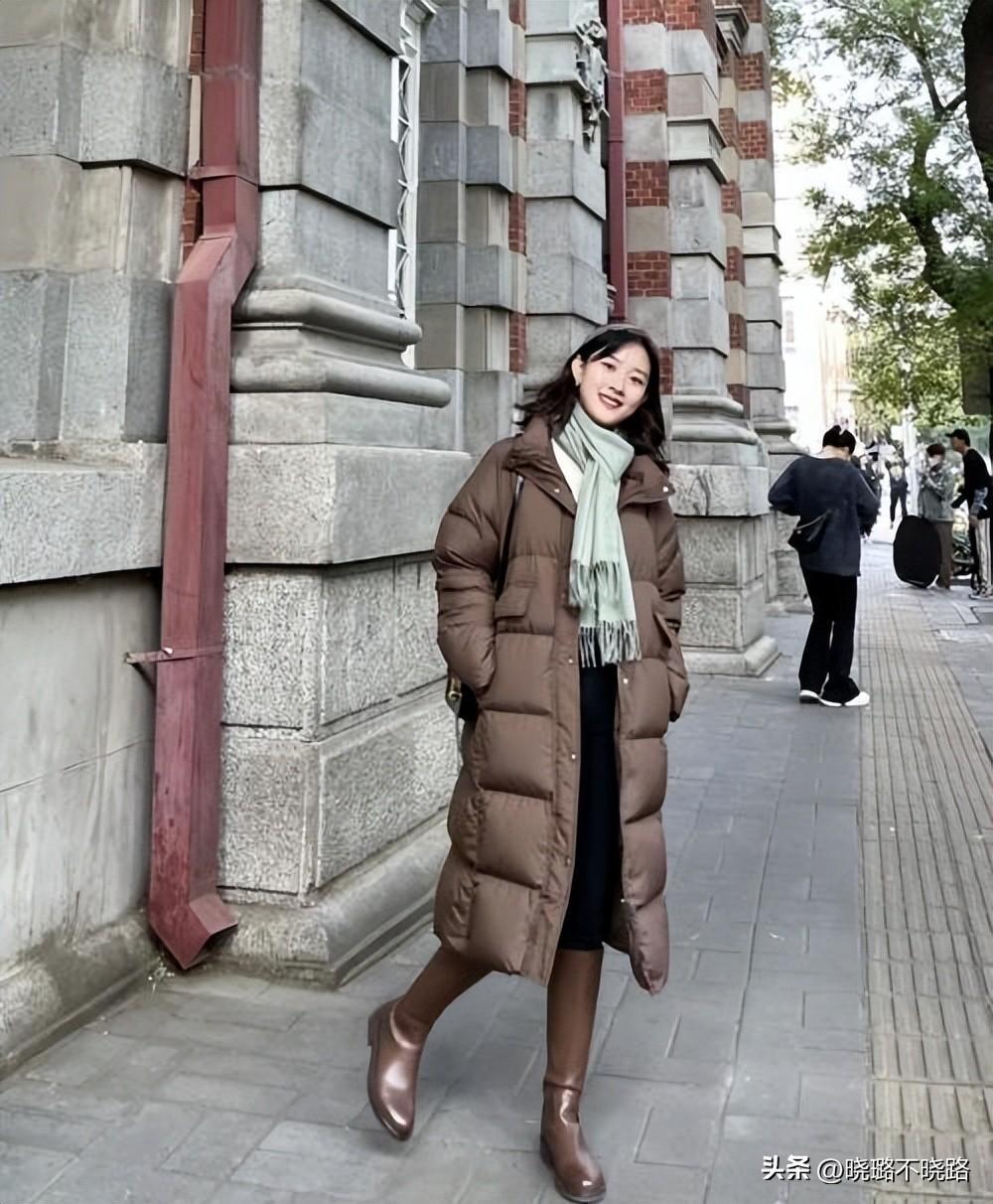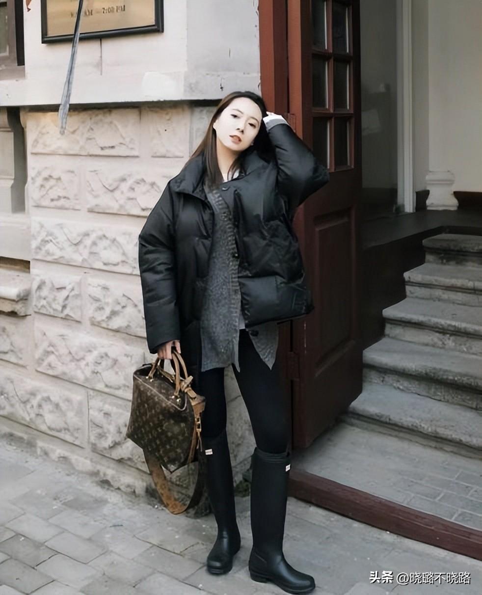 當然了,靴中褲在冬天之所以備受歡迎的另一大原因就是因爲它能弱化冬季穿搭的笨重,即使是搭配厚重的羽絨服,靴中褲的穿法都能打造利落的鬆緊視覺效果,因爲,我們可以在羽絨服裏面疊穿稍長的外套或者襯衫,層次感更足,更時尚。