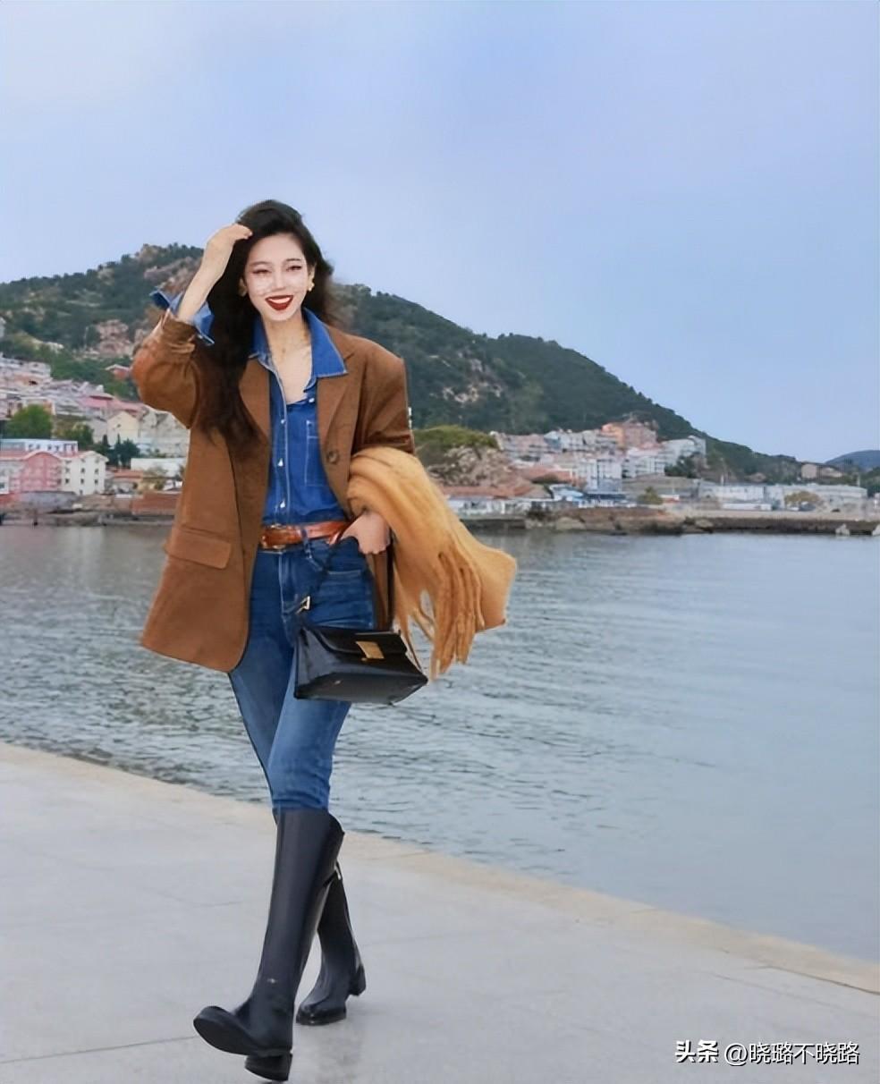 在機場多次看到她重新這套穿搭,牛仔的硬朗和長靴的帥氣時尚可以說是不謀而合了,這樣一套穿搭可謂是風格滿滿、吸睛十足呀。