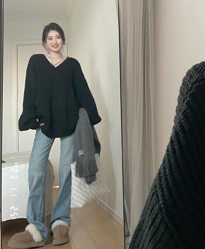 經典黑大毛衣,除了耐看顯瘦之外,更多的就是它版型所帶來的舒適和自在了,小v領的設計,拉長脖子線條又瘦臉。