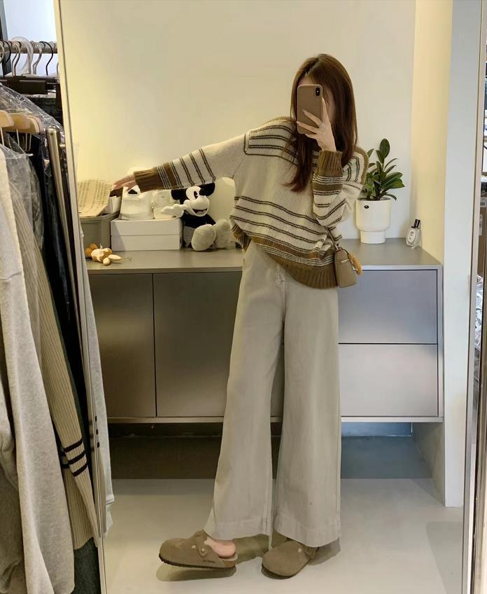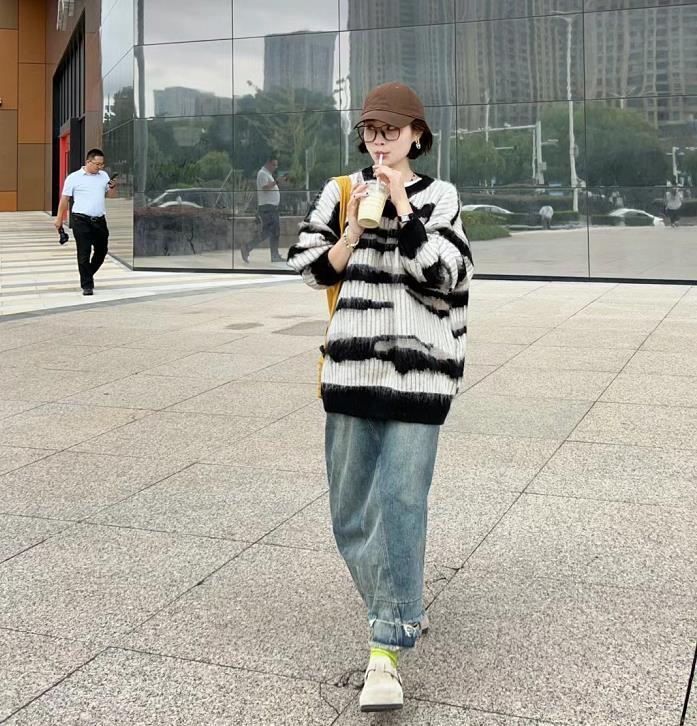 喜歡鬆弛感的穿搭,那種舒適自在和慵懶感,是無論如何都無法從其他穿搭中給予的。帶點條紋元素的毛衣,多了些趣味和個性,就算配簡單的下裝也不會太單調。