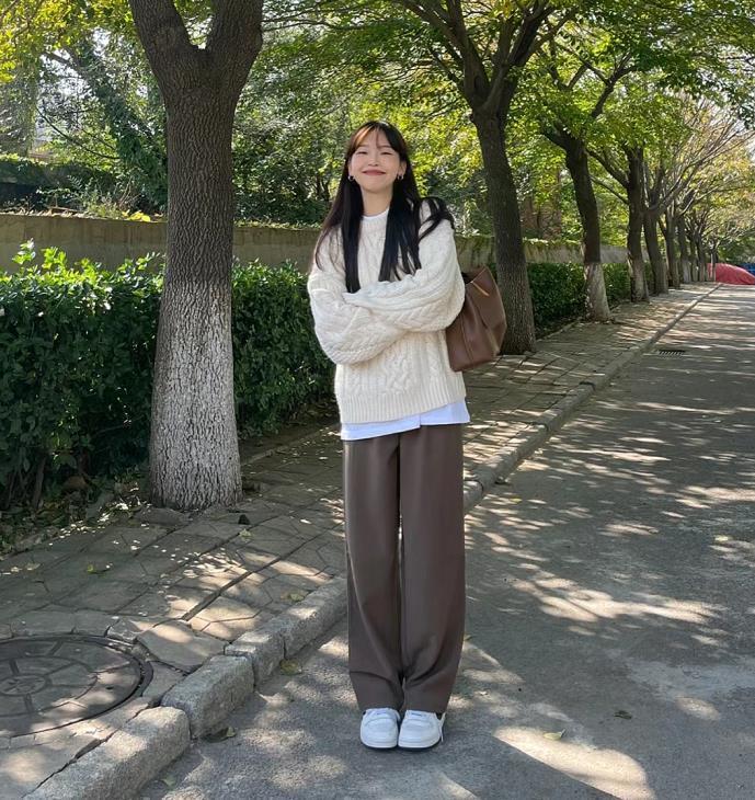 早春,毛衣+褲子那可是最顯休閒舒適的穿搭,適合日常各種場合,上班通勤或者是逛街都可。