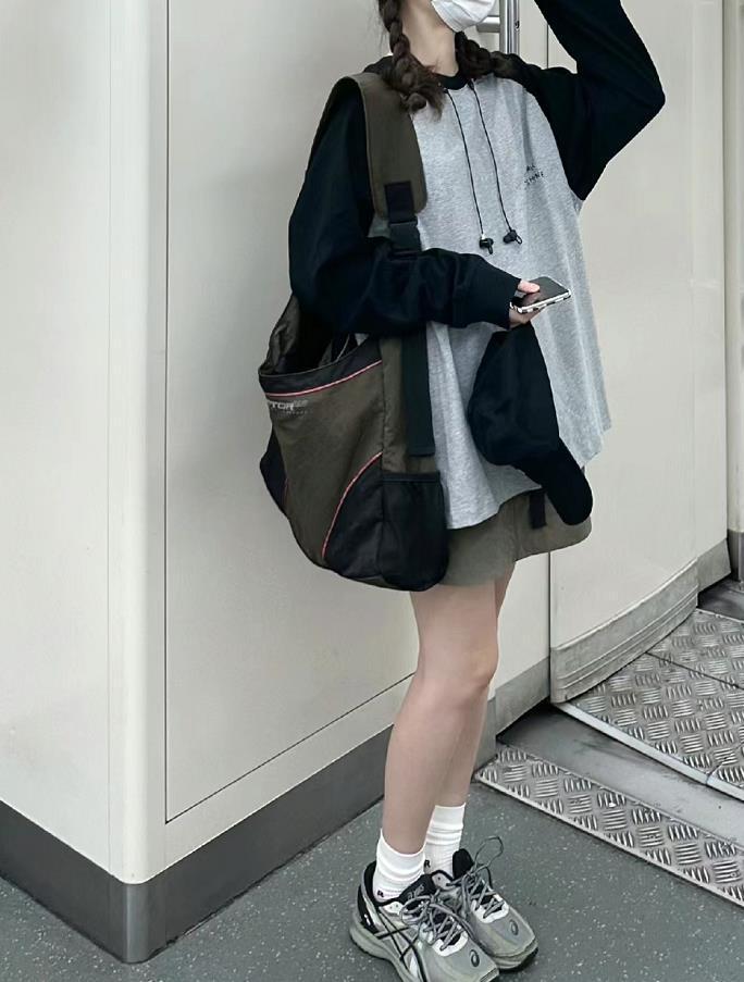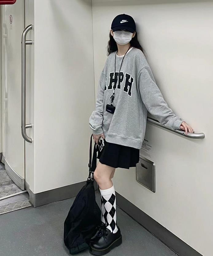 專屬於廣東人的衛衣穿搭,上長下短,150的個子也能穿出高挑感,灰黑的配色組合,耐看且時髦。