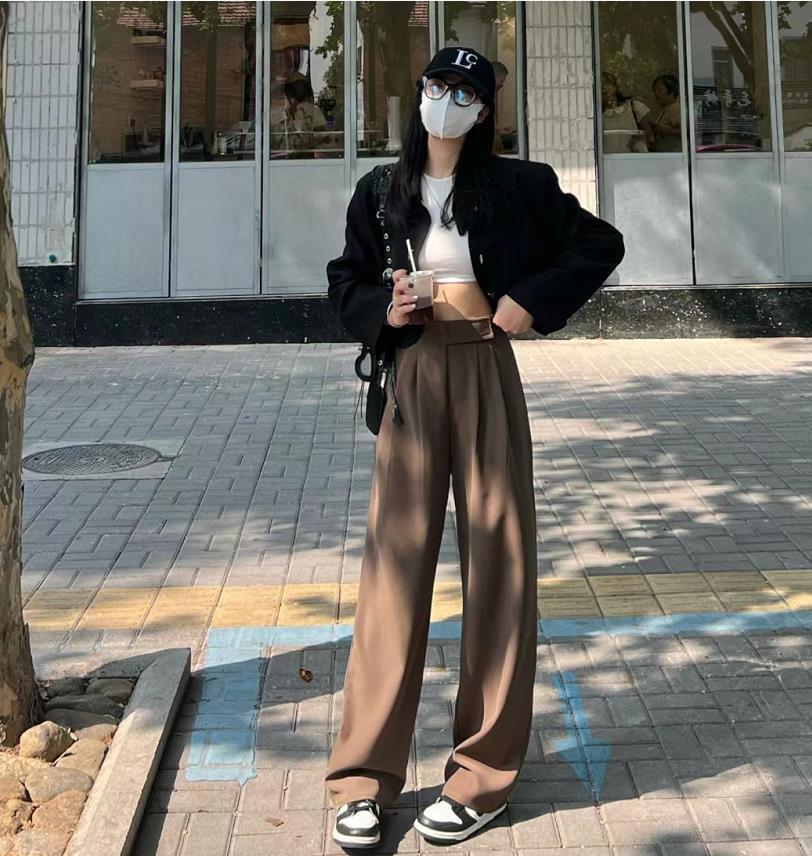 短款西裝外套+拖地西裝褲,比起長西裝外套,短款的似乎更適合小個子,就算是與拖地的長褲相配也無懼。