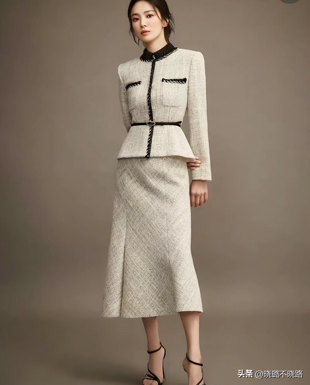 宋慧喬在韓國女明星中身高是中等偏下,尤其是身材的比例是她的短板,但是她會正確運用穿搭技巧,突出腰線的設計,能最大的拉長下半身。通過同套裝搭配方式,加入腰帶的點綴,能做到修身和分割上下半身的作用,套裝更有層次感。
