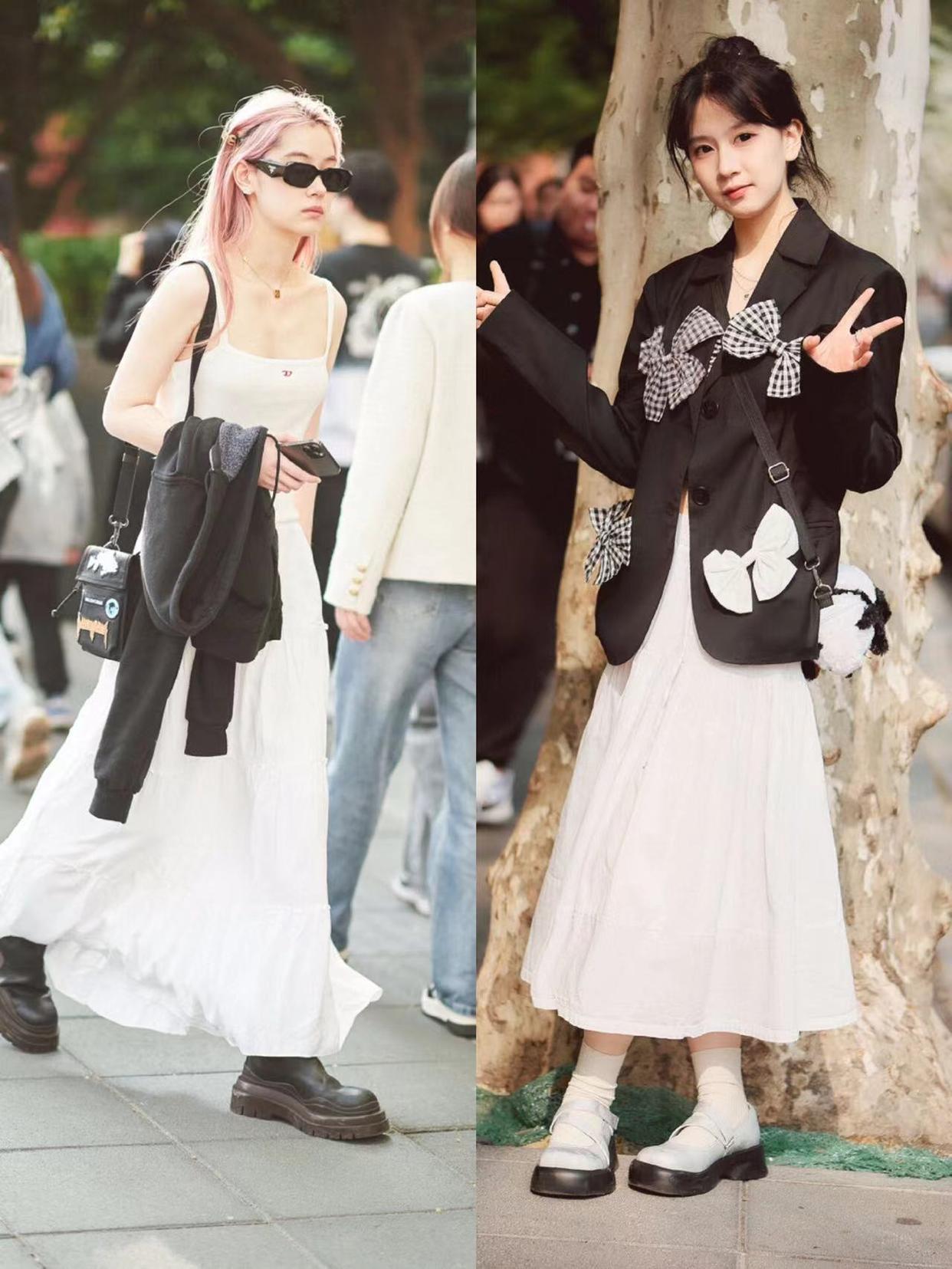 尤其是長度拖地的裙子,對於小個子女生來講,穿在身上有一種撐不起來的感覺。相對於拖地的長裙,剛剛到小腿附近長度的裙子,就更容易駕馭。