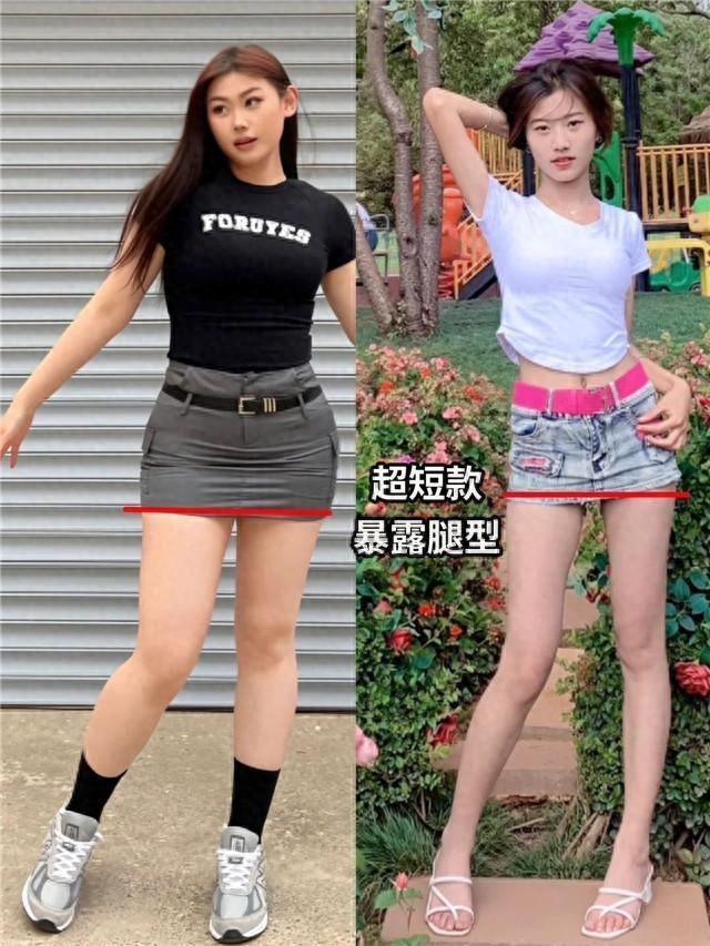身高不足160cm的小個子,並不建議大家穿着這種到大腿長度的超短裙。因爲這種超短裙,很容易暴露腿型,尤其是低腰款式的超短裙,更容易暴露身材五五分的不足。