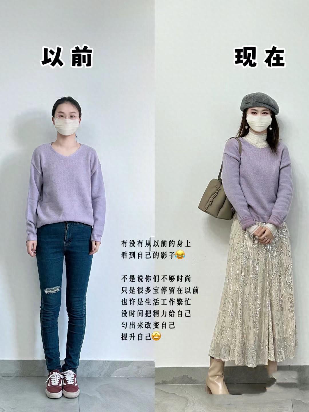 學會搭配以後,更善於利用服裝之間的巧妙組合、塑造出更加新穎浪漫的美。比如寬鬆的針織衫,疊搭半高領打底衫,層次感更清晰,搭半身裙、貝雷帽就時髦又洋氣。