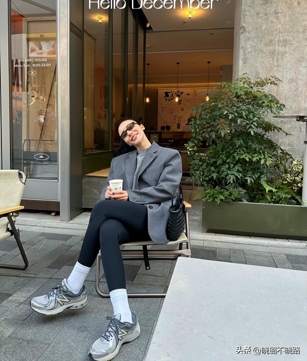 給鯊魚褲的質感再增加一個層次的表現,就是褲口無腳的銜接設計,儘量讓鯊魚褲的褲口和鞋子之間有距離,露出一截腳腕穿,顯瘦又利落。若要保暖,更推薦搭配中筒襪穿,層次豐富穿衣更顯個性。