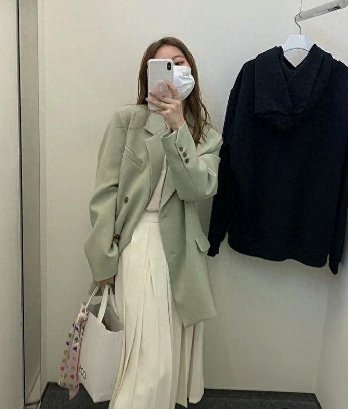牛油果綠也太好看了吧,一整顆行走的牛油果綠,喜歡它的寬鬆版型,可藏肉顯瘦了。裏面疊穿件白t會更好看一些。